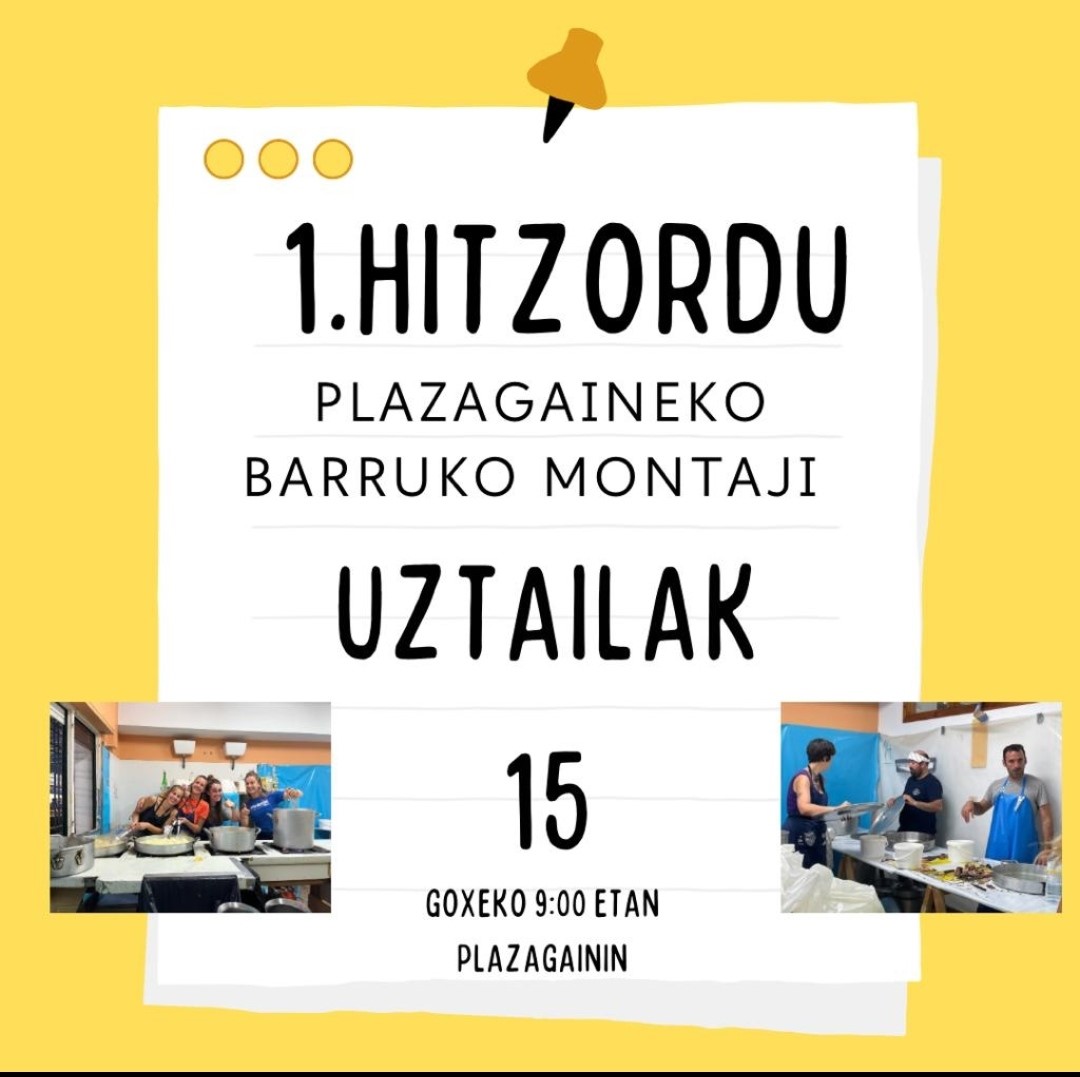 Antolatzallik aspaldi daz hasitxe aurtengo PLAZAGAÑEko biharrakin. Atzeko lan asko ein biharra egoten da Plazagañi aurrrea atateko, urtero egoten dizen aldaketak zuzendu beharra, zein hobekuntza ein birdan aztertu, mateixalan kontaketak, baimenak eta abar. Aurtengo lelengoko deialdixe be hamen da, ongoxe zapatun (uztailak 15) goxeko 9 xetan Plazagañin batuko gaz barruko gelak preparateko. Hurreatu esko bat botatea!