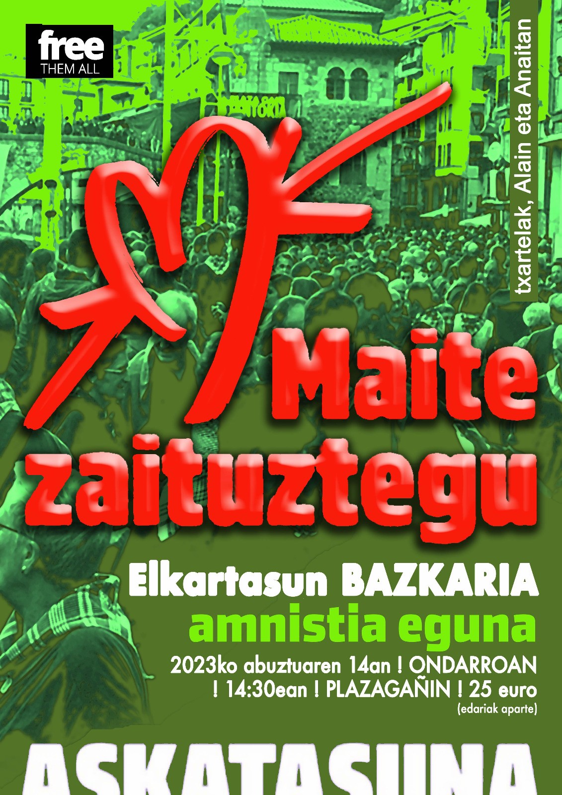 Urti jun ta urti etorri Abuztuak 14 an Plazagañin ospatu ixan douen ELKARTASUNEko bazkaxe eingou aurten be. Gure artin falta dizenak ETXIN IKUSI ARTE! bapo bapo jan edanin ospatukou euran hutsuni. Bazkaiko tiketak ANAITASUNA eta ALAIN tabernetan eskuratu ahal ixango dozue 25 euron trukin. Bazkaxe eguerdiko 2:30 xetan hasiko da (gutxi gorabera), marmitxaku, entsaladi, atun erri eta melokoti postre lez ixango da menu ta bazkaxe girotzeko bertsolaxak (JON MAIA ta HAIZEA TELLERIA).