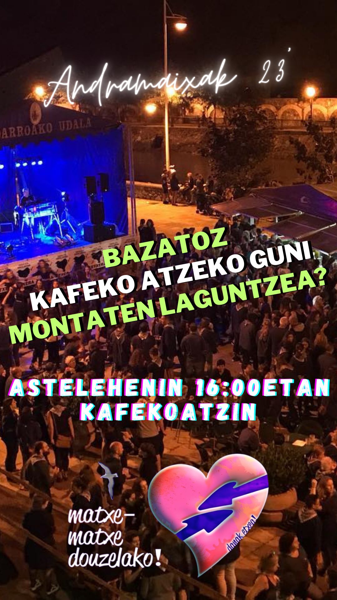 Jaxai begire herriko txosna ezberdiñak montaketa lanetan hasitxe daz, gaur arratsaldin adibidez Kafeko atzeku guz montatea. Auzolanan bidez ataten diz aurrea herriko jaxak eta horretako esko asko bihir ixaten diz. Animaten bazaze gaur arratsaldin hurreatu Kafeko atzea arratsaldeko 4 ak aldea! Danon artin eingou!