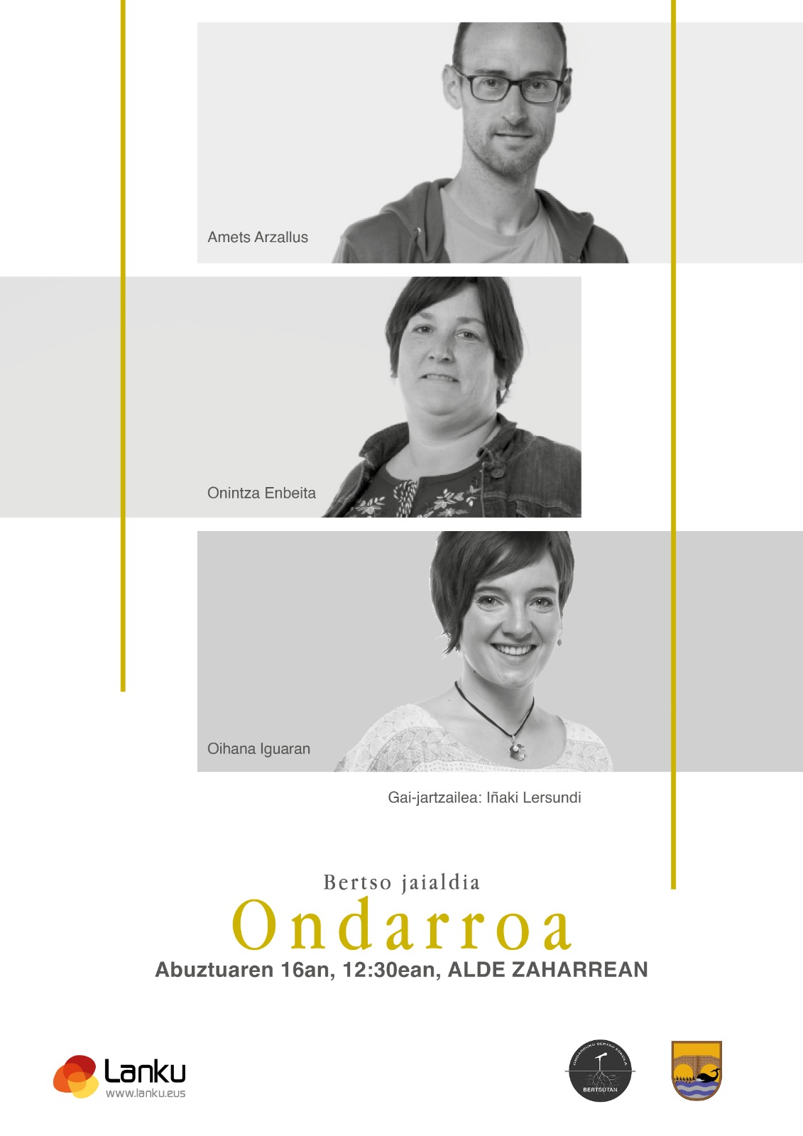 Bertso saio mundiala antolatu dabe Abuztuak 16 rako (kuadrilla egune) Alde Zaharrin eguerdiko 12:30 xetatik aurrea. Parte hartzallik punta puntako bertsolaxak ixango diz: AMETS ARZALLUZ, ONINTZA ENBEITA eta OIHANA IGUARAN. Gai jartzalle latxeik, IÑAKI LERSUNDI eongo da.