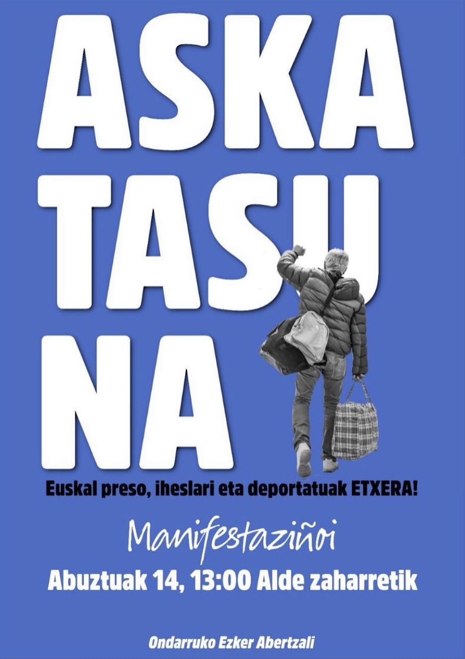 Urteroko deialdixe ixaten da amnistia eguni antolatzen dan MANIFESTAZIÑOI. Etxin falta gazkuzenak geure artin nahi douzela aldarrikatzeko hitzordu eukiko dou gaur be 13:00etan Alde Zaharretik hasitxe.