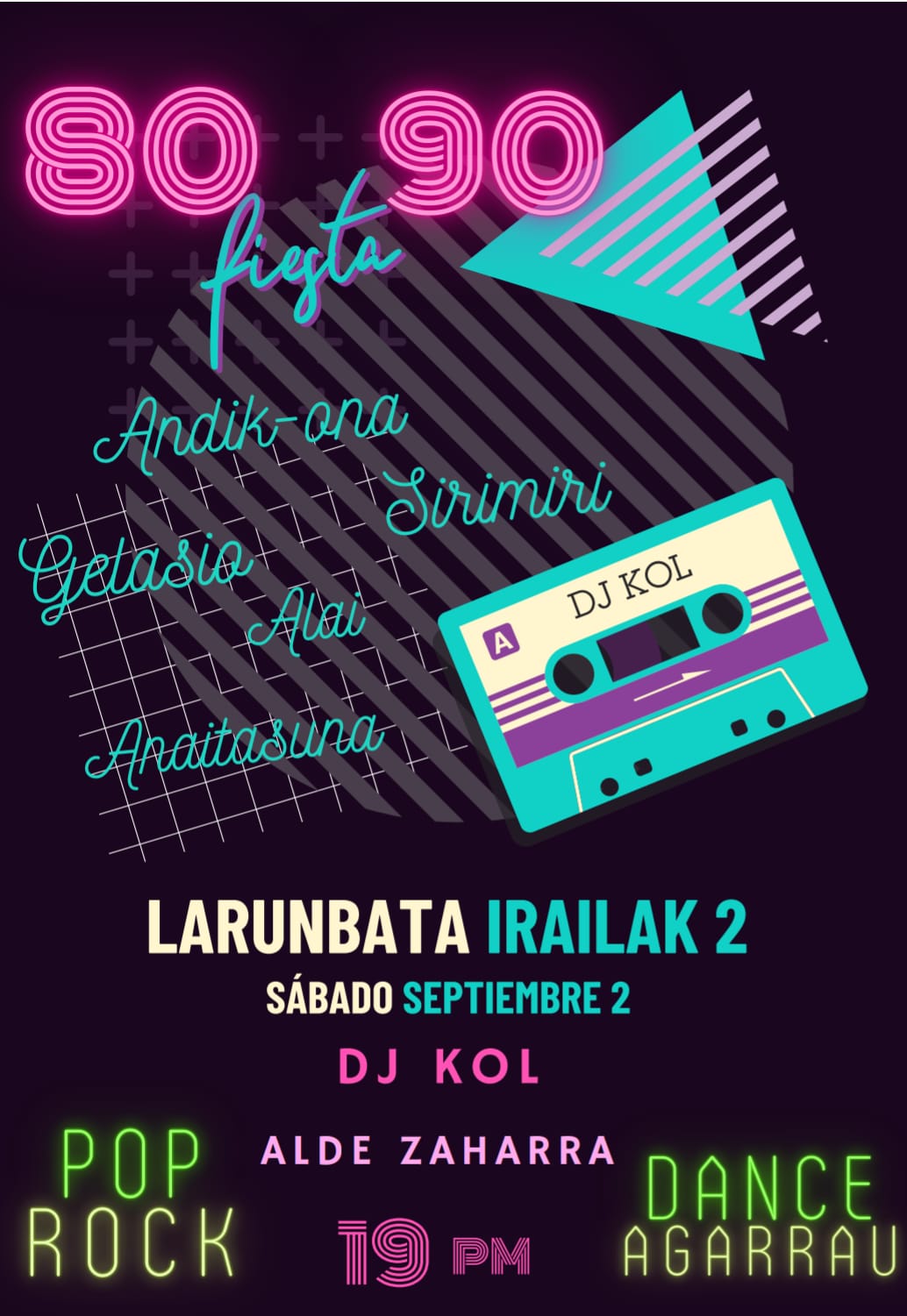 Udiai amaieri emoti eta Alde zaharra dantzan ipintxi de jaxan helburu. Bertako bost tabernak antolatu dabe 80/90 deitxutzen jaxe ongoxe zapatun arratsaldeko 7 etatik aurrea. , Dj KOL eongo da musiki ipintxen. Dantzan etxi gustoku bazu ez dozu bihir beste atxikirik, hurreatu!