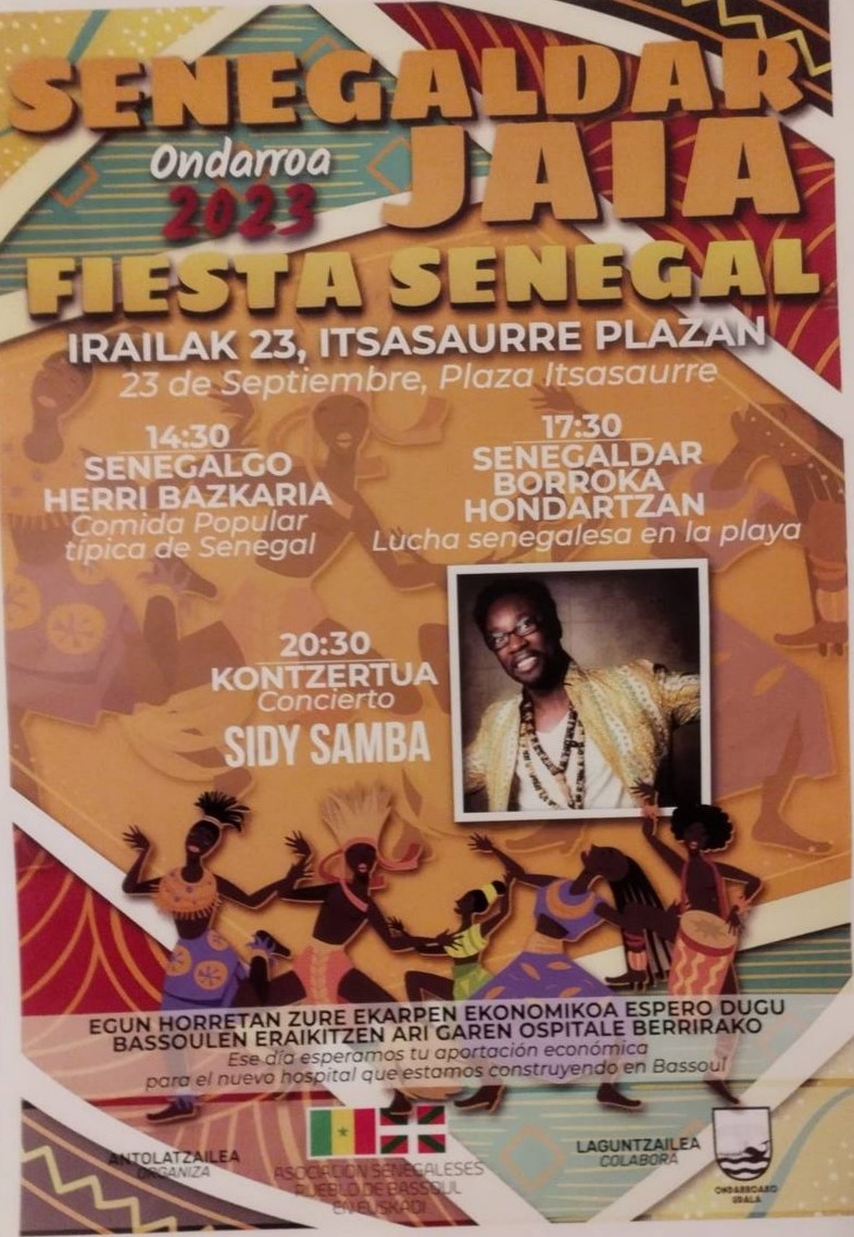 Aurten be SENEGALDAR jaxe ospatuko da herrixan. Kartelin azaltzen dan latxeik, jaxai herri bazkai bateaz emongotze hasieri (eguerdiko 2:30) bertako janak dastatuaz, arratsaldin hondartzan SENEGAL borrokin saiuk ikusteko aukeri eukikou eta illuntzin SIDY SAMBAn kontzertuaz amaieri emongotze. Asko diz herrixan bixi eta lanin dabizen Senegaldarrak, guk geure ohitxurak erakutsi eta guk eurenak ezagutzik danok aberasten gatxu. Hurreatu geure herri kidik ezautzea!