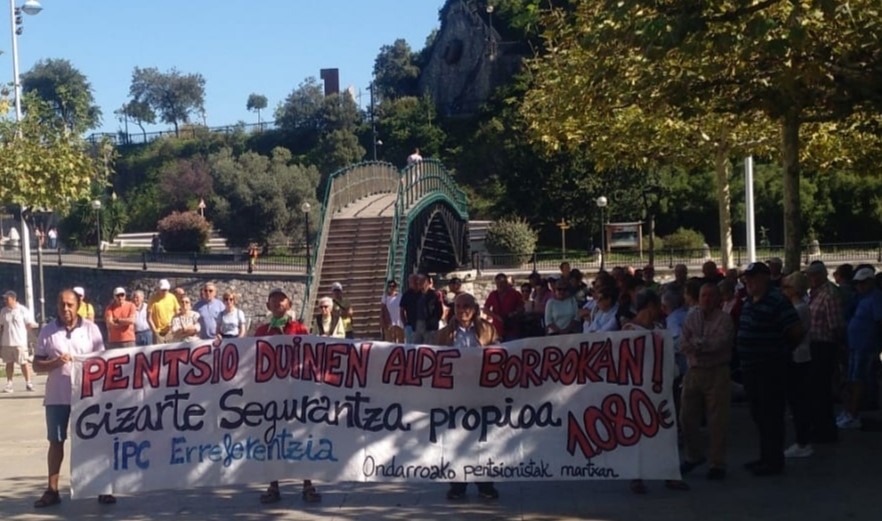 Egueldixe lagun euki dabe gaur herriko PENTSIONISTAK kurtso barriko lelengoko enkarteladan. 12 xak puntun zabaldu dabe pankarti eta atzin 150 lagun batu eidiz esazku antolakuntzako batek, tartin alkati eta bi zinegotzi, 20 minutuko egonaldixe ein eta gero JO TA KE LORTU ARTE! esanaz amatxu dabe gaurko enkarteladi ta datorren astelehenin be han batuko dizela eskakizun bardiñakin: IPC erreala, PENTSIÑOI publikuk eta duiñak eta Genero-arrakalak ezabatzi.
