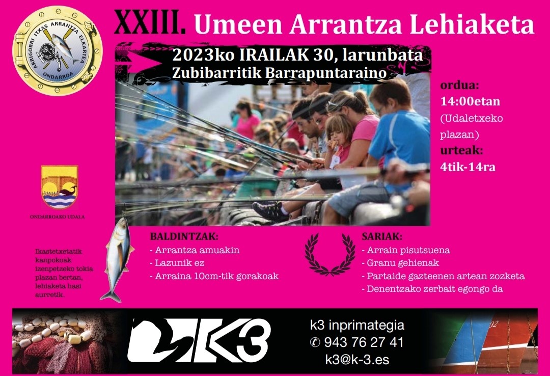 Irailak 30in (zapatu) eingo da aurtengo umin arrantza lehiaketi. Aurtenguaz 23 garrena ixango da eta 4 tik 14 urte arteko gaztik ahalko dabe bertan parte hartu. Hiru baldintza derrigorrezkuk bete bihir diz: Arrantzi amuaz ixan birde, Lasunak ez diz onartuko eta arrañak 10 zentimetrotik goraguakuk ixan biko diz. Eremuai dagokionez, Zubibarritxik Barrapuntarte ixango da.