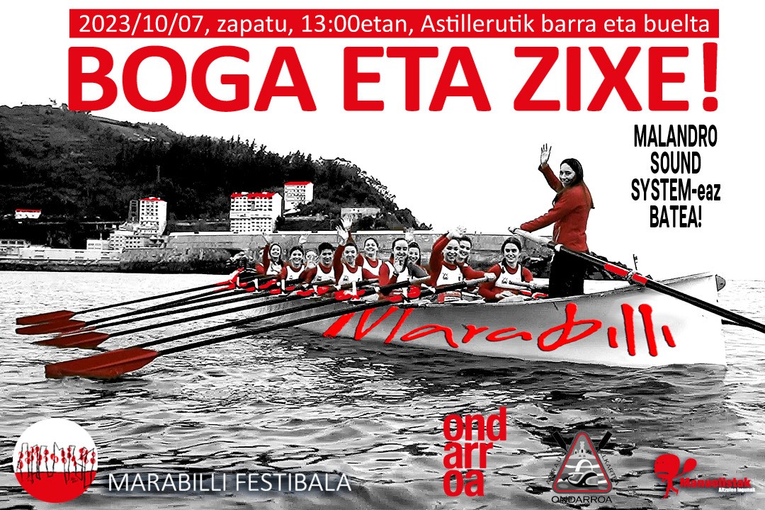 Ondarroako Marabilli sormen festibalak agur esango dotza bere ibilbidiai ongoxe asteburun, eguenin hasi (urriak 5) eta domeka arte (urriak 8) ixen handixak hurreatuko diz Ondarrure, besteak beste, Belako, Joseba Sarrionandia, Esti Urresola, Fermin Muguruza, Tapia eta Leturia, Maddalen Arzallus, Asier Altuna, Arantza Santesteban… Bañe herriko jendik be parte hartuko dau, herriko rock taldik, musika eskolako gaztik, Barnetegikuk, Kresala Musika bandi, Aurrera futbol taldi, Arraun taldi, herriko artisau eta antzerkigilik. Ixan be, jaialdi askotariko, parte-hartzaile eta kritiku ixan da beti Marabilli.