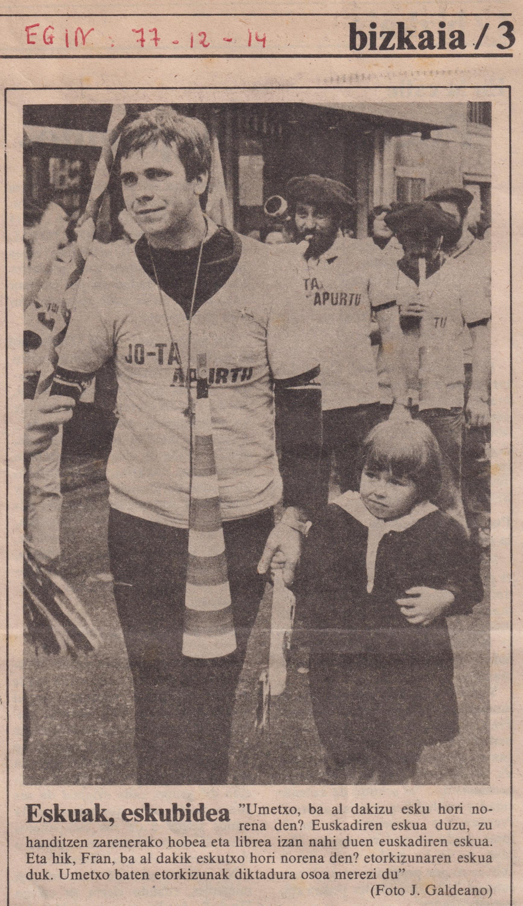 “Umetxo, ba al dakizu esku hori norena den? Euskadiren eskua duzu, zu handitzen zarenerako hobea eta librea izan nahi duen euskadiren eskua. Eta hik Fran, ba al dakik eskutxo hori norena den? Etorkizunaren eskua duk. Umetxo baten etorkizunak diktadura osoa merezi du” Egin egunkarian argitaratua.