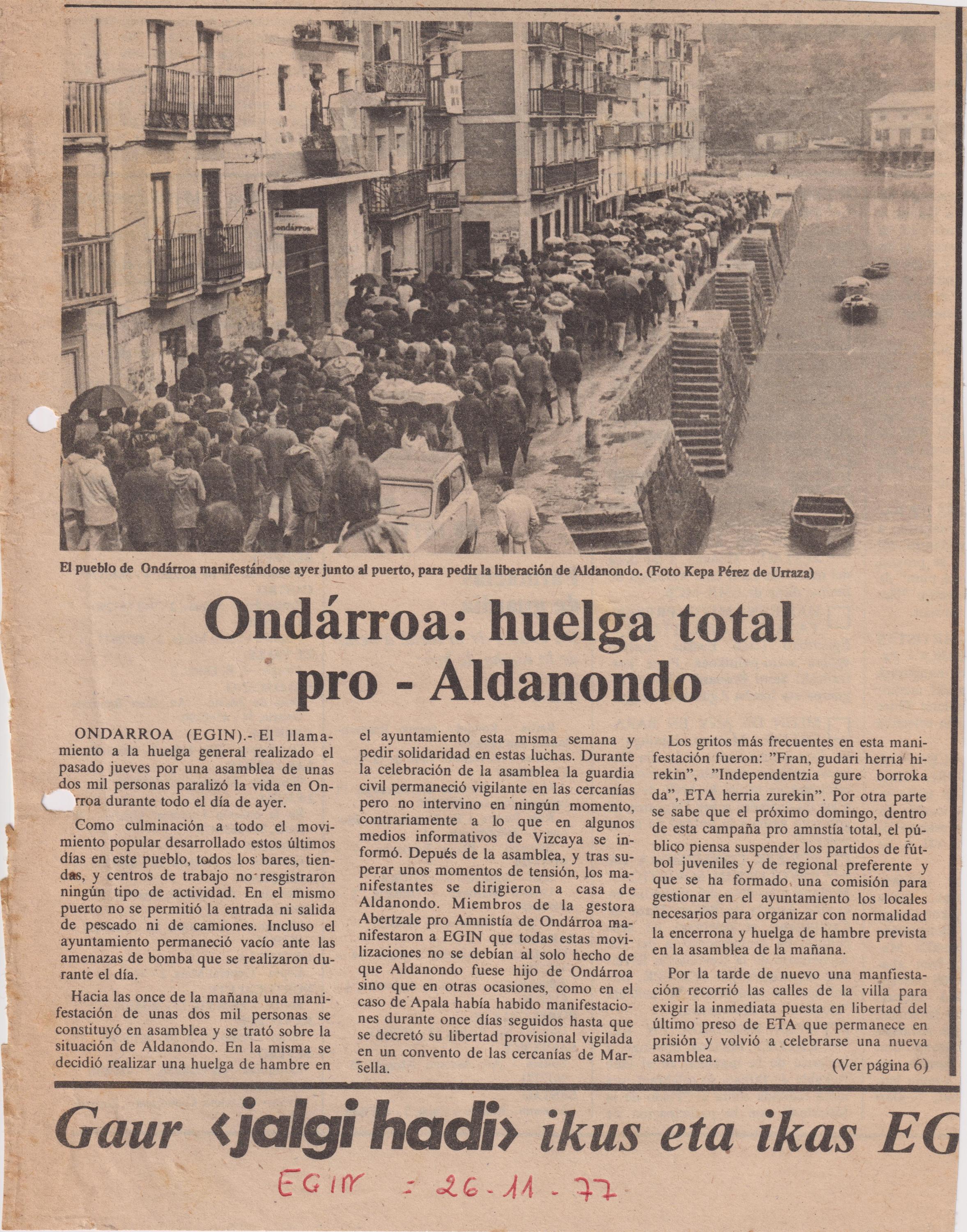 EGIN egunkariko orrrixe da azpixan ikusiko dozuena (1977-11-26)