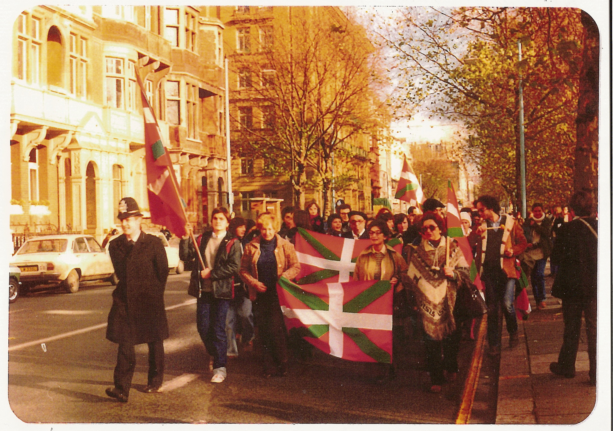FRANen aldeko manifestaziñoi eiben LONDRESen 1977xan, tartin hainbat herrittar.