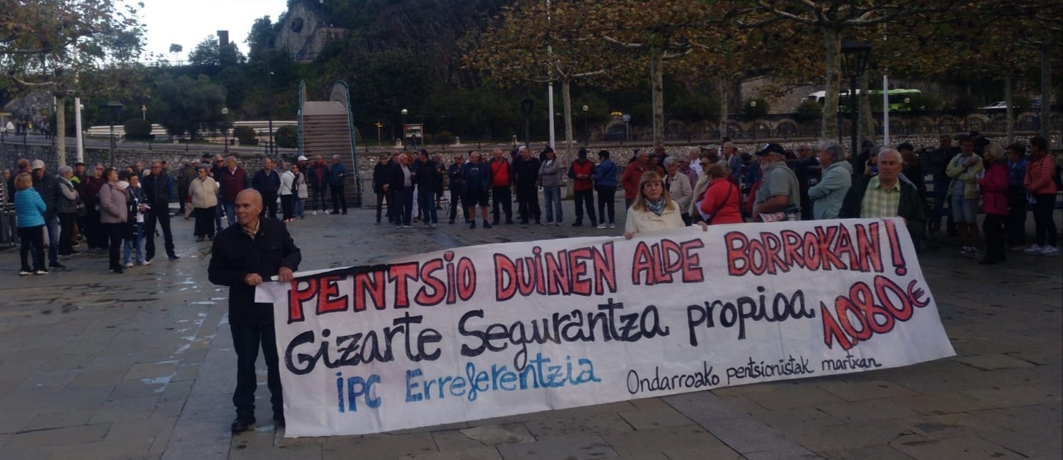 Gaur be han ikusi douz, 12 xak puntun zabaldu dabe pankarti eta beran atzin 185 herrittar batu diz, hiru mezu argiaz: 1.080 euro gutxieneko Pentsiñoi, Gizarte segurantza propixu eta Genero arrakali ezabatzi. Asko eskatzi de? Eskakizun horren aurrin, baten bat kontra eon leike? 20 minutun eon diz batute eta astin egon dizen barrixak entzun ondoren, datorren astelehenin be han eongo eidiz esanaz amatxu de ekimena. Jo ta Ke LORTU ARTE!