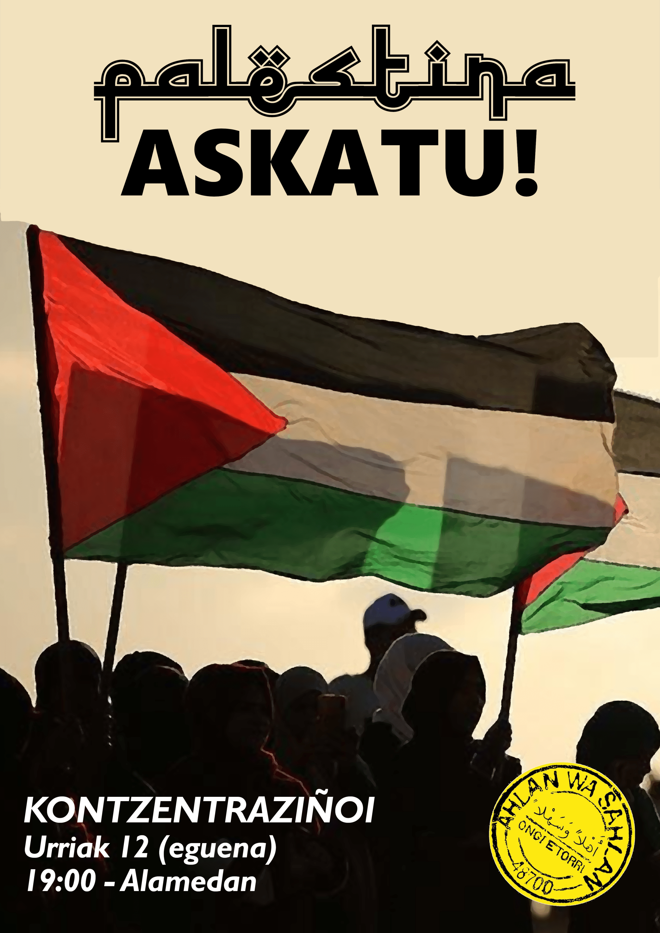Azkan egunetan kezka handiz gaz bizitxen Gazan Israel burutzen dabilen sarraskixak. Palestinar erresistentzixik burututako erasuai erantzune dala dinue sionistak, baine atzo jaxuk ez gaz! Urte luzez dabiz Sionistak herri palstinarra desagertzeko ahaleginetan. Horren adibideik garbixena sistematikoki burutzen dabezen giza eskubidin kontrako ekimenak: Blokeu, Apartheid egoeri, lurran konfiskaziñoik, etxin eraistik, kolonun asentamentuk, atxiloketak, erailketak… Argi eta garbi esan leike ISRAEL GENOZIDI dala!