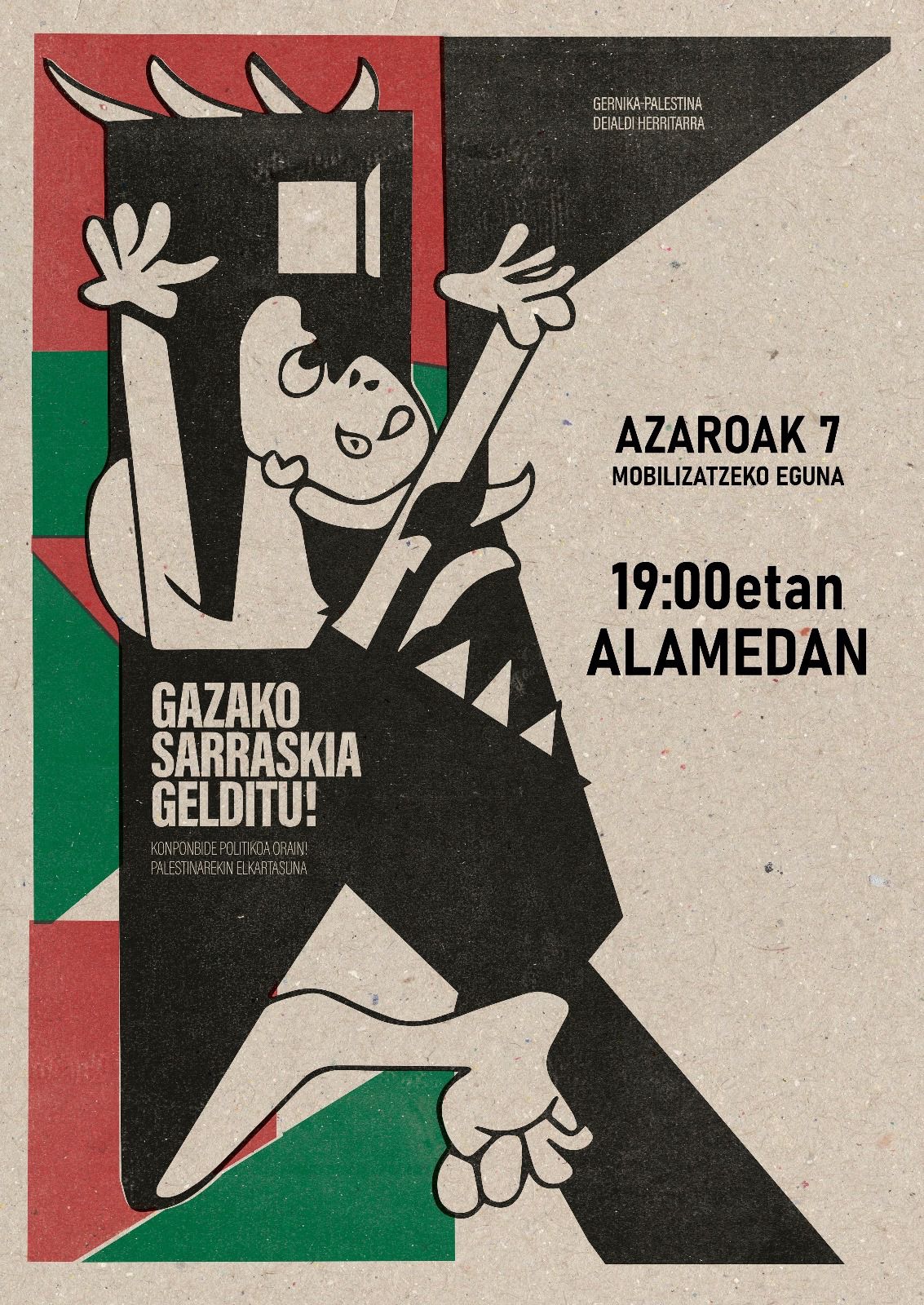 Notizixa baltzak datoz egunero ekialdetik… Gernika-Palestina iniziatibik deitxutako mobilizazio egunaz bat, herrixan be Palestina jasaten dan genozidixu , salatu eta elkartasune adierazteko elkarretaratzi egongo da.