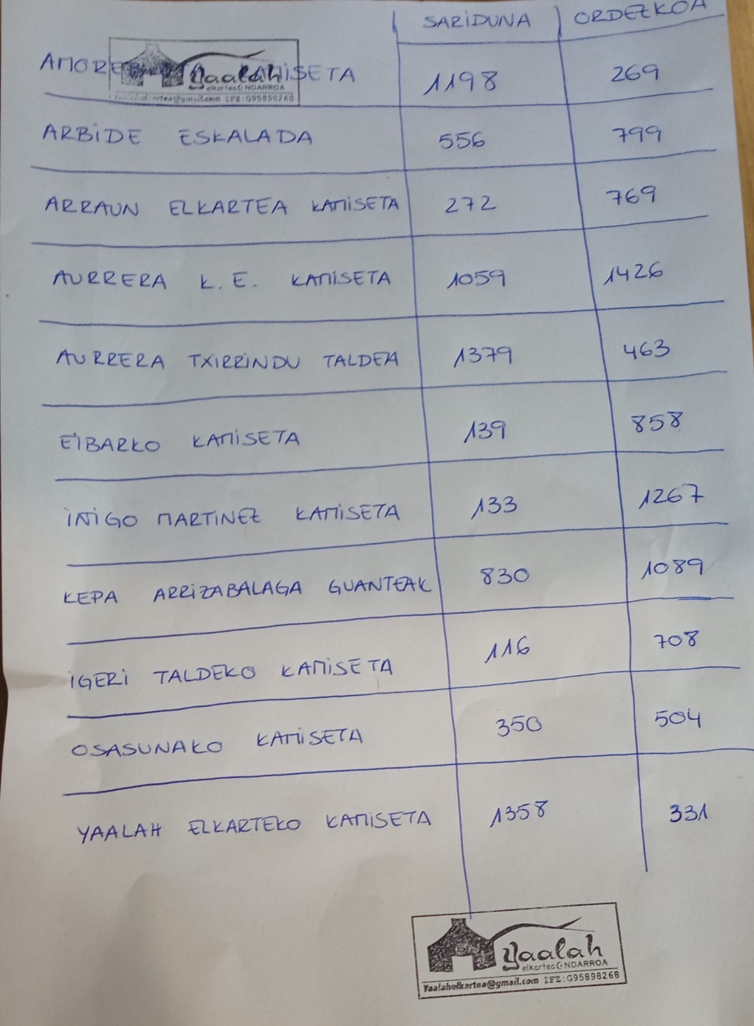 Urtero herriko kirol elkarte eta kirolarixan mateixalaz Yaalah elkartik etxen daben zozketi burutu dabe gaur. Honetxek diz zenbaki saritxuk eta ordezkuk.