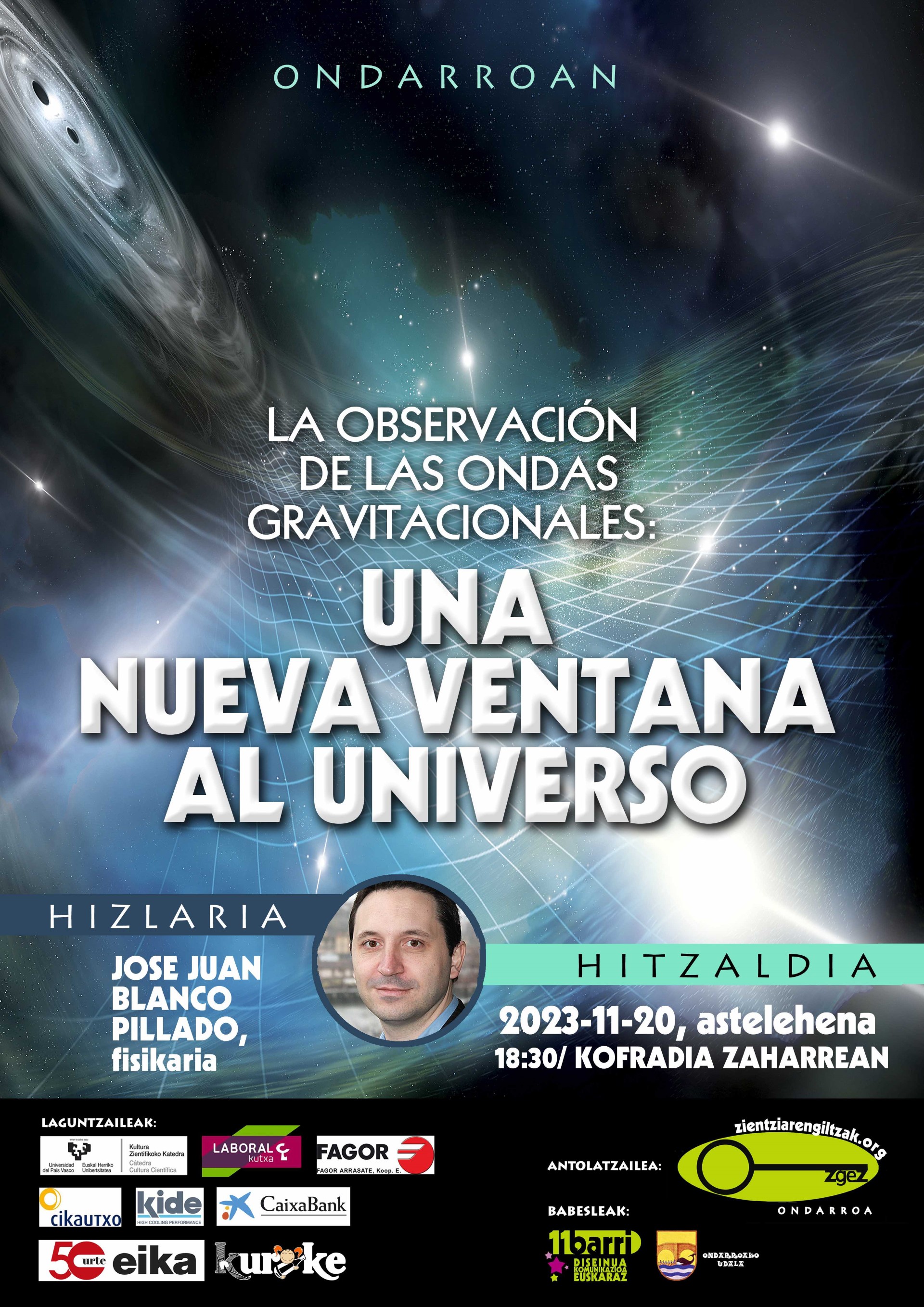 Zientziaren giltzak elkartin ongo hilleko hitzaldixe astelehenin ixango da eta gai lez, La observacion de las ondas gravitacionales: UNA NUEVA VENTANA AL UNIVERSO! ixenburu ipinitze. Hitzaldixe emongo dabena, JOSE JUAN BLANCO PILLADO fisikaxe ixango da. Gogoratu, arratsaldeko 6:30 tan hasiko dala eta Kofrai zaharrin egongo dala. Anima eta jun entzutea!