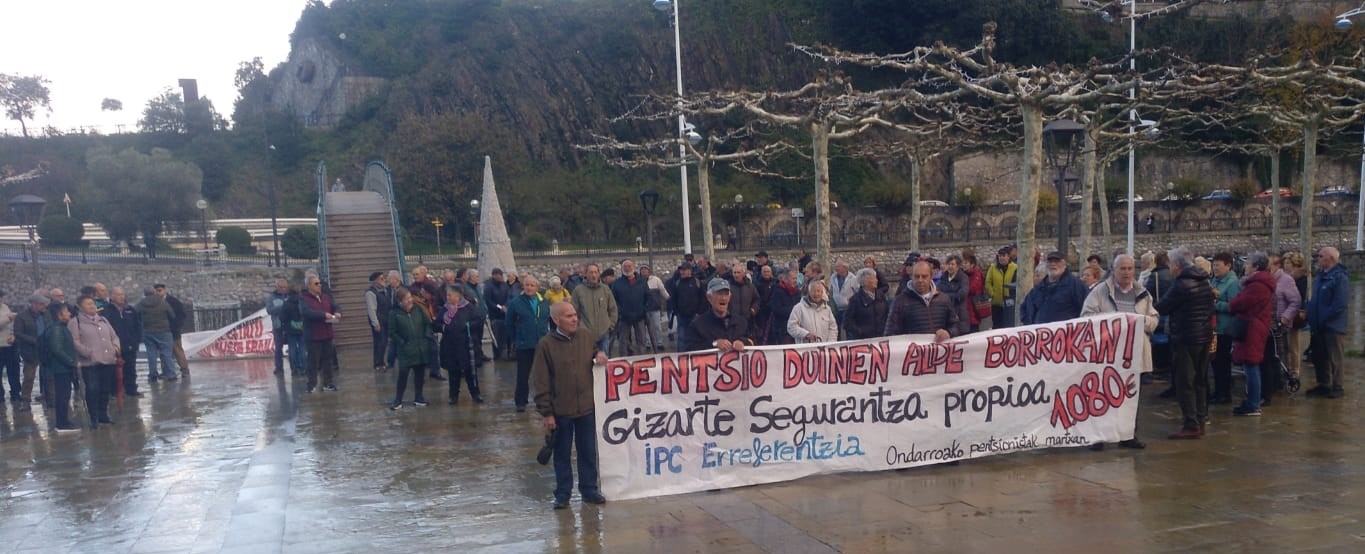 Urteko azkan hillin sartu gaz eta herriko PENTSIONISTAK kalin jarraitzen dabe “danontzako” eskakizunakin (1.080 euroko gutxieneko pentsiñoi, Gizarte segurantza propixu eta soldatetan genero arrakalakin amaitzi). Euri tantak hasi diz pankarti zabaldu dabenin bañe ez diz kikilddu eta 150 lagun batu diz Alamedan. 20 minutu ein ondoren azkan barrixak emotxuez, gaur arratsaldeko 7:30 tan udalak plenu ospatzen dau Kofrai Zaharrin eta bertan eztabaidatuko da 1.080 euroko soldatin eskaeri bultzatzi udaletik. Beste alde batetik, gaur kanpaña barri bateaz hasi diz, siñadura bilketi hasiko dabe, Galdakaoko ospitxalea eta Bilboa jun etorrixak etxeko zuzenin Ondarrutik. Ahal dabenak plenure hurreatzi eskatu dabe Alamedako ekimenetik. Datorren astin be Alamedan batuko eidiz esanaz amatxu dabe gaurko ekitaldixe. Jo ta Ke LORTU ARTE!