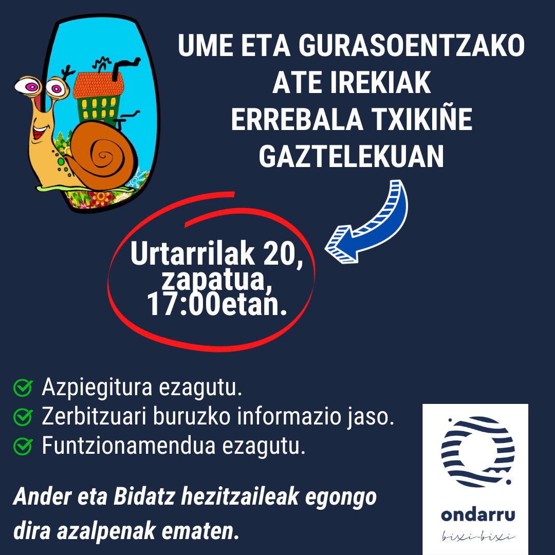 Errebala Txikiñe Gaztelekun ate irekien jardunaldixe egingo da zapatun (urtarrilak 20) arratsaldeko 5 etan, gurasuntzako zein umintzako. Etorri ezautzea zeube!