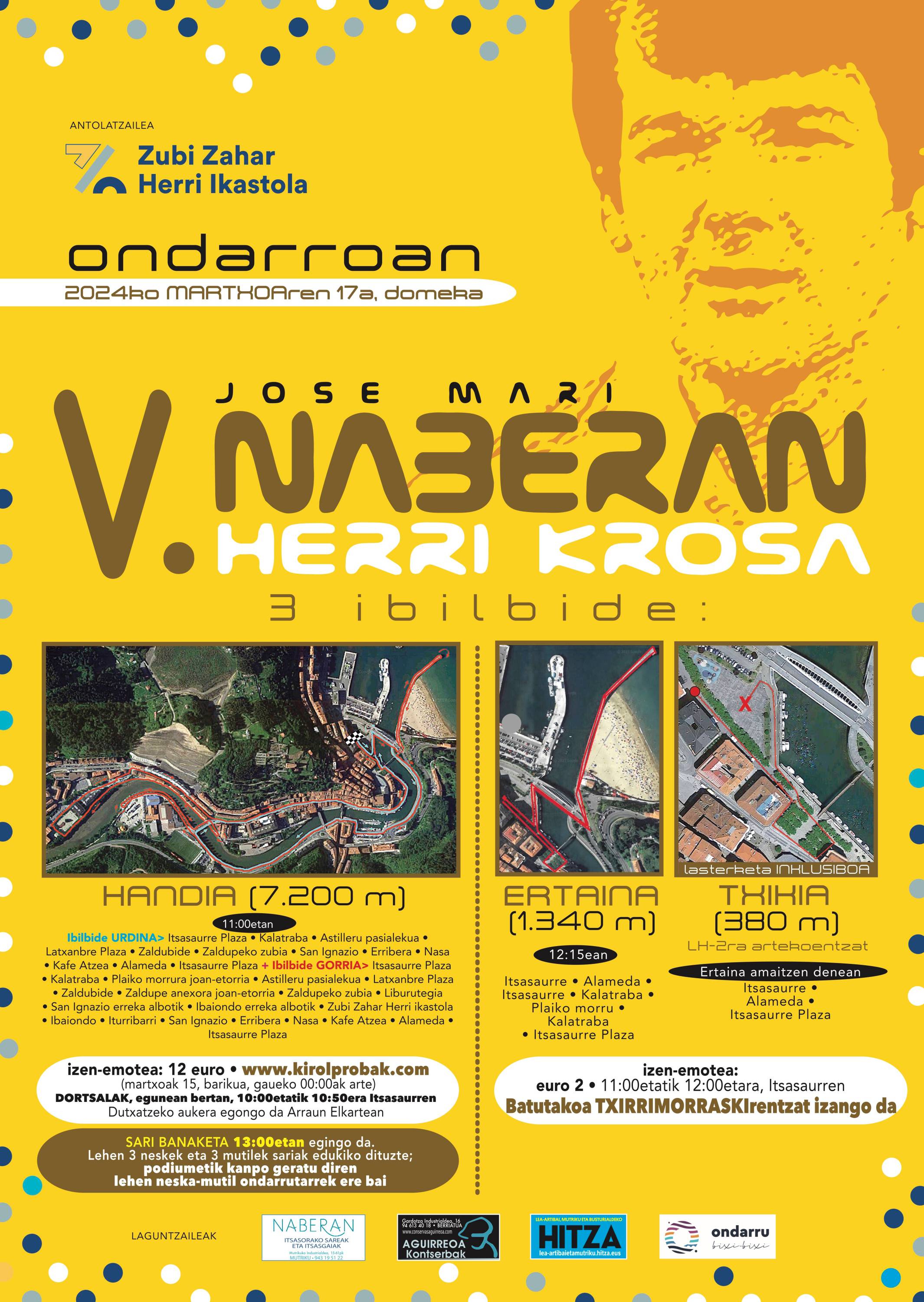 Martxoak 17xan ospatuko da aurtengo JOSE MARI NABERAN V. Herri krosa, Zubi-Zahar herri ikastolik antolatute. Aurten be hiru mallatan eingo da aringaingan, txikixe (380 mt), ertaine (1.340 mt) eta handixe (7.200 mt). Kartelin dakazue bertan parte hartzeko bete behar dizen baldintzak, ixen emotin tokixak, diruk, ibilbidin nundik noakuk,….Anima eta hartu parte!