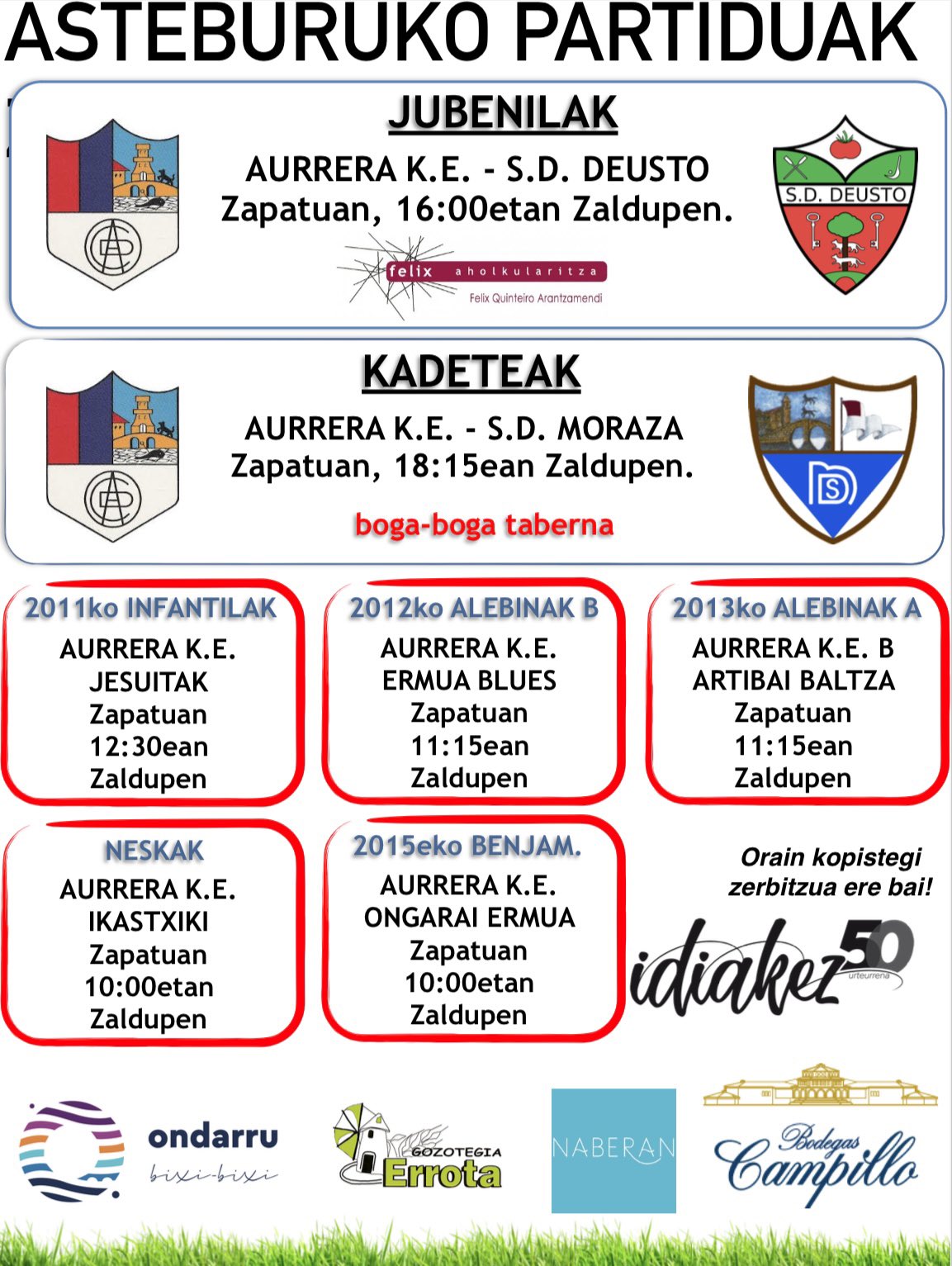Honek diz astebukaera honetan AURRERAko talde desbardiñak Zaldupe udal futbol zelaxan jokatuko dotxuen partidun egun eta ordutegixak.