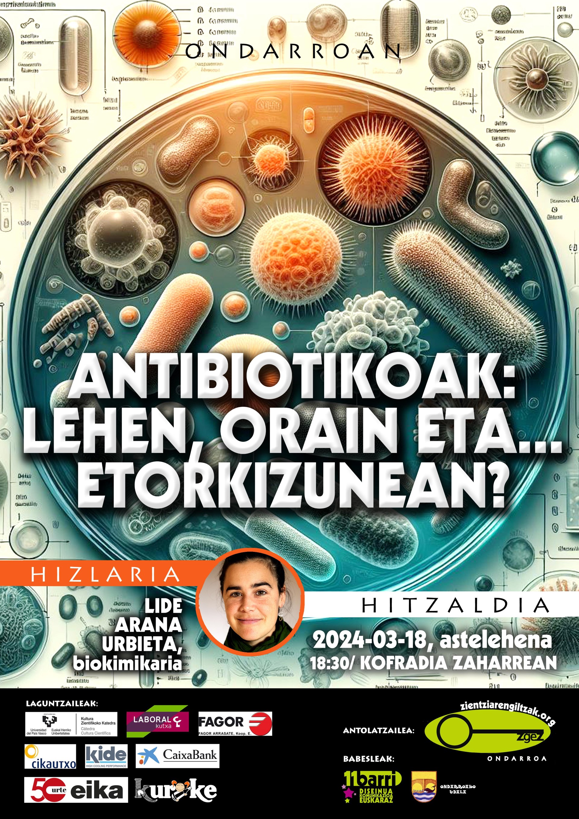 Martxoak 18xan ixango da ongo hilleko Zientziaren Giltzak Elkartik antolatutako hitzaldixe. Arratsaldeko 6:30 tan hasiko da eta gaxe: ANTIBIOTIKUK lehen, on eta bixar, hizlari lez LIDE ARANA URBIETA biokimikarixe etorriko da. Merezi dau entzutea juti.