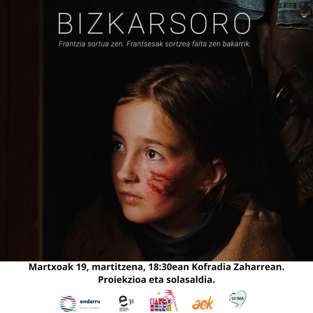 KORRIKA kulturalan barrun BIZKARSORO pelikuli ikusteko aukeri eukikou martitzenin (Martxoak 19) Kofrai Zaharrin arratsaldeko 6:30 xetan. Proiekziñoin ondoren solasaldixe eongo da berai buruz. Merezi dau ikusti!