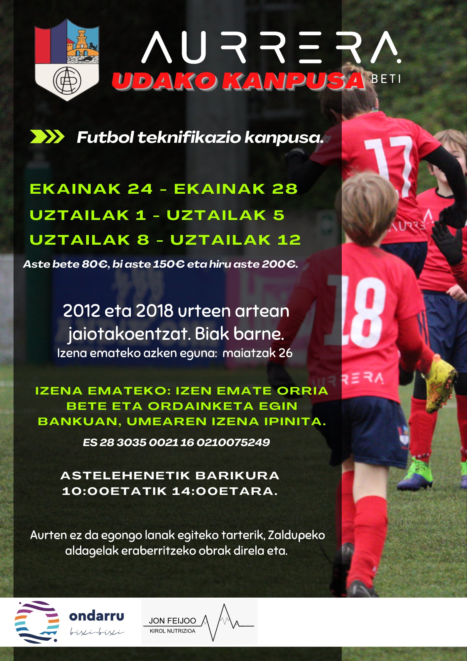 Aurten be Aurrera futbol taldik Udako Kanpuse antolatu dau, 2012 eta 2018 urtin artin jaxotakuntzako. Ixena emoteko azken egune, maiatzan 26xe ixango da. Azpiko kartelin dakazue informaziñoi gexa.