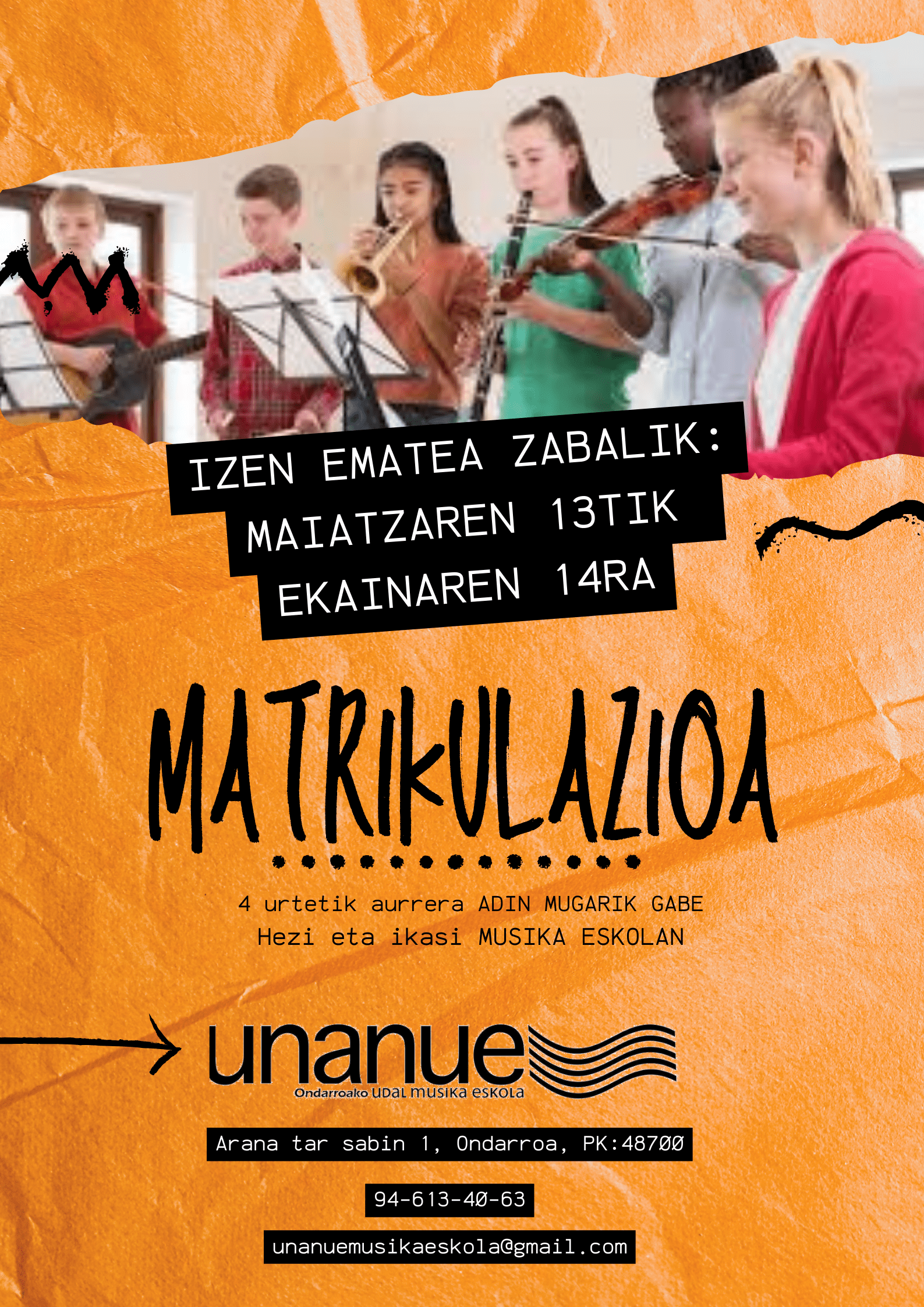 Musika Tallerra (4 – 7 urte), abesbatzak, talde instrumentalak, konboak, kamara musika… eta ASKOZ GEXAUA ONDARRUKO UNANUE UDAL MUSIKA ESKOLAN.