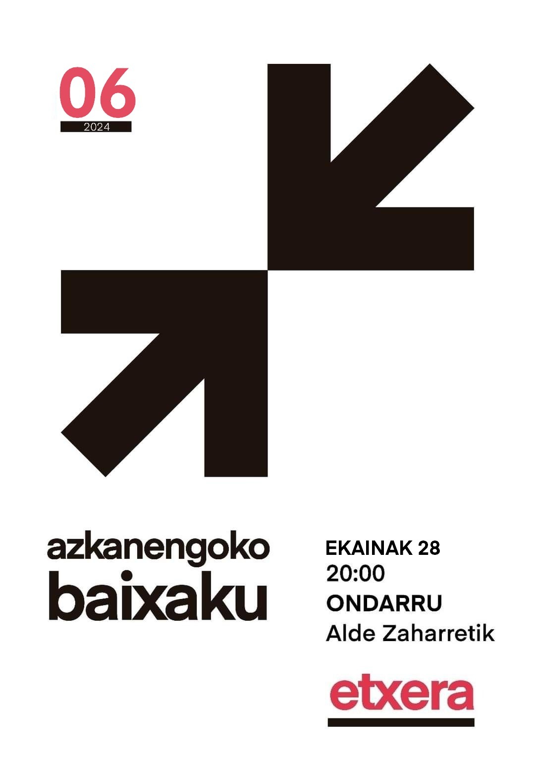 Ekainan amaiera alla gaz eta ohiku douen latxeik hilleko azkan baixakutako enkarteladi eongo da gaur (E-28xan). Illuntzeko 8 retan urtengo dau Alde Zaharretik, etorri zeube. DANAK ETXIN EGON ARTE, JO TA KE!