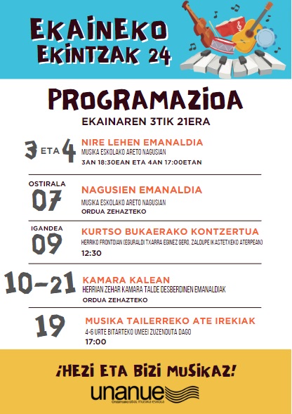 UNANUE udal musika eskolatik eskatuzku mezu hau zabaltzeko. Ekainan 3tik 21ea hainbat ekimen presta dabe herrittarran gozameneako, hurreatu entzutea!