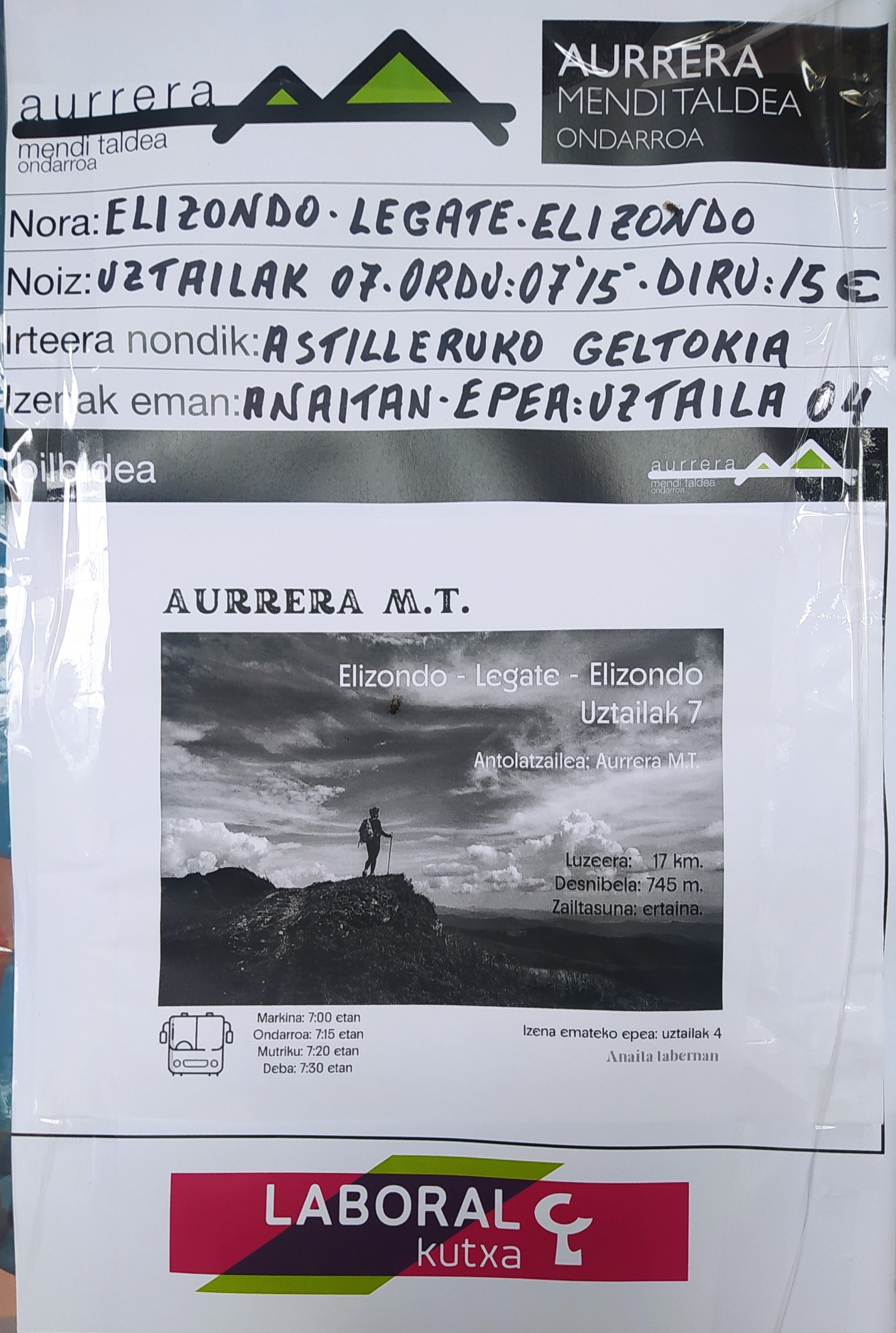 Egun berezixe aukeratu dabe ongun AURRERA MENDI taldekuk irteeri etxeko, batzuk parrandan ibiliko dizen bittartin bestik mendi irteera jungo diz, LEGATE mendire. Uztailak 4rarte emon zeinke ixenak ANAITASUNA tabernan eta 15 euron trukin egun ederra eta lagun artin egun pasa etxeko aukera ederra.