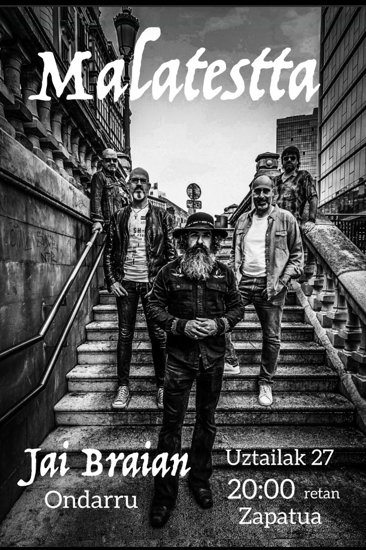 Musikiaz bixkat ulertzen daben lagun batek esazku oso talde potenti dala ongo zapatu illuntzin arratsaldeko 8retatik aurrea eukikouena Jai Braianen, MALATESTTA. Guk berai jamon eingotzau ta han eongo gaz.
