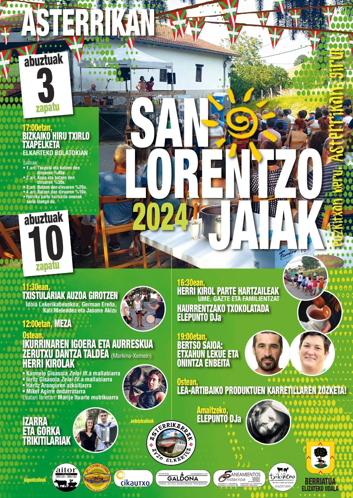 Egitarau zabala presta dabe Asterrikarrak aurtengo San Lorenzo jairako hasi Abuztuak 3an eta Abuztu 10eako behian ikusiko dozuen latxeik. Dantzak, musikalaxak, bertsolaxak, herri kirolak…ezta eongo aspertzeik.