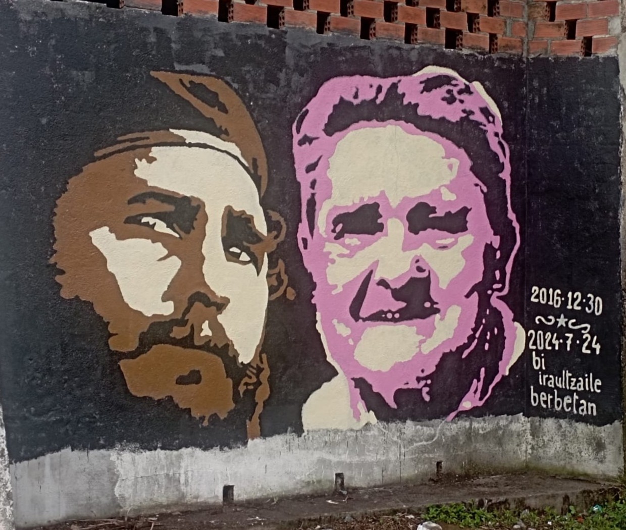 Astin konturatu gaz Itxurribarriko paretin agertu dan margolanaz. FIDEL CASTRO RUZ eta IMANOL ORUEMAZAGA BASETA agertzen diz bertan ta ixenburu hau ipinitze lanai: IRAULTZAILE BI berbetan. Guk ez gendun ezautu FIDEL bañe bai IMANOL, ta baieztatzen dou iraultzalle handixe ixan zala. Bakotxa beran mallan, batek Ertamerika osu irauli ban ta bestik herri xume hau (Ondarru). 1956xan etorri zan gure herrire elixako organista latxeik, herrittarrakin bat eiban eta herri-harru bihurtu ban bixi gazen tokixe. Sasoi hartan gertaten zin injustizixa desbardiñai aurrea ein (herri eta Euskal Herri mallan) ta komunidade sendo bat martxan ipintxi lortu ban. Frankismo garaiko agintarixai aurre etxi toka gakon, eleiz atzerakoi batei be pilak ipinitzan, indar okupatzallik jo puntun ipini ben (hartzi toka gakon)….ez euan IMANOL gelditxuko banik. Herrigintzan sartu zan buru belarri (hizkuntzi bultzatzen, langillin aldeko aldarrixak zabaltzen, kulturiai oiñarrixak ipintxen, hezkuntzi zutabe lez hartzen, memoixa historiku azalerazten, herrixe udalea zuzentzen…), danin ban parte.
