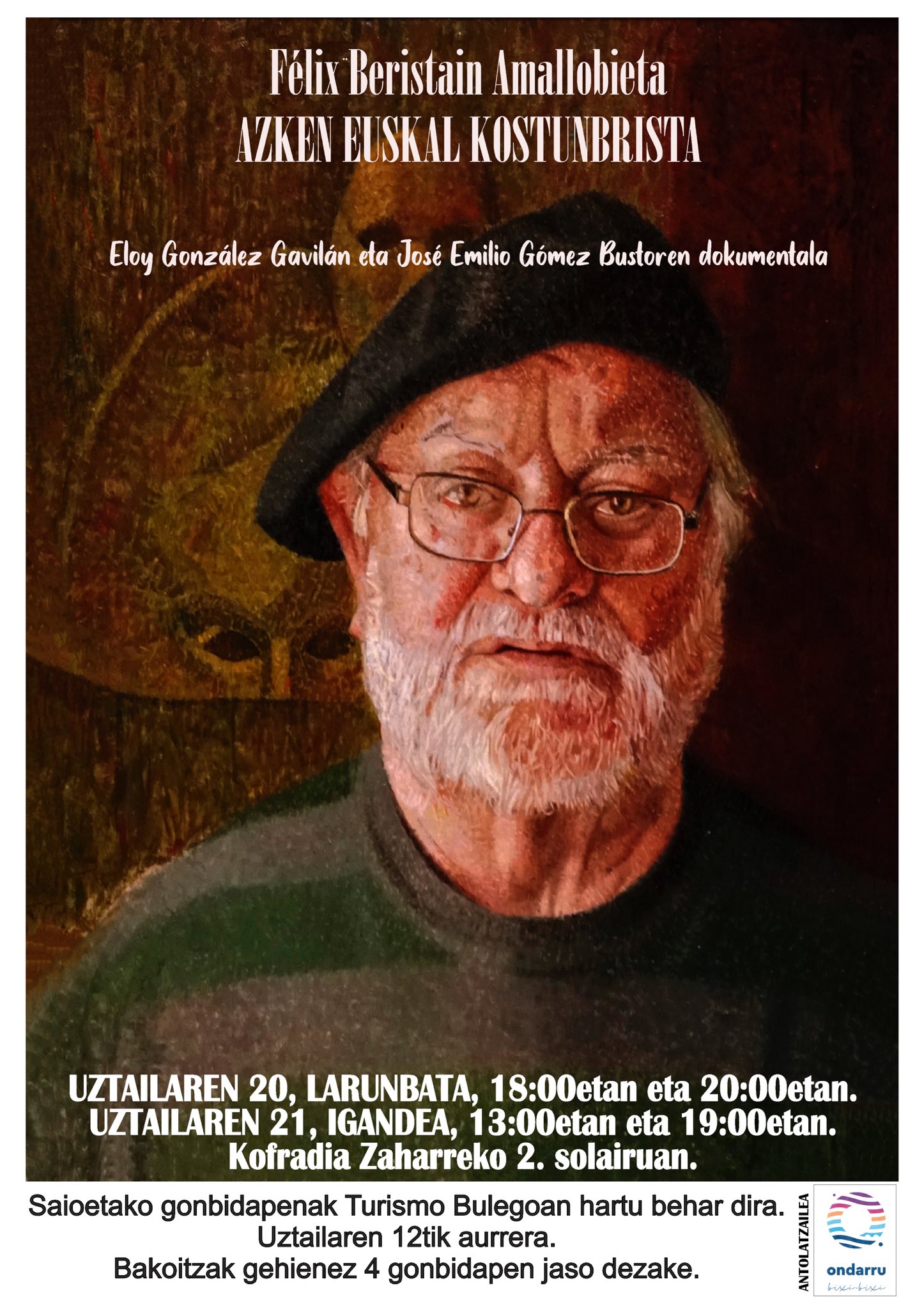 ELOY GONZALEZ GAVILAN eta JOSE EMILIO GOMEZ BUSTOk eindako dokumentala, 𝐅𝐞𝐥𝐢𝐱 𝐁𝐞𝐫𝐢𝐬𝐭𝐚𝐢𝐧 𝐀𝐦𝐚𝐥𝐥𝐨𝐛𝐢𝐞𝐭𝐚: 𝐚𝐳𝐤𝐞𝐧 𝐞𝐮𝐬𝐤𝐚𝐥 𝐤𝐨𝐬𝐭𝐮𝐧𝐛𝐫𝐢𝐬𝐭𝐚 dakar ikusgai Ondarruko Udalak herrire. Uztailak 20 (zapatu) eta 21in(domeki) ixango diz emankizunak azpixan dakazuen ordutegixakin, Kofrai Zaharreko 2. solairun. Berta juteko gonbidapenak Turismo bulegun hartu birdiz, hillan 12txik aurrea. Ez galdu ikusteko aukeri!