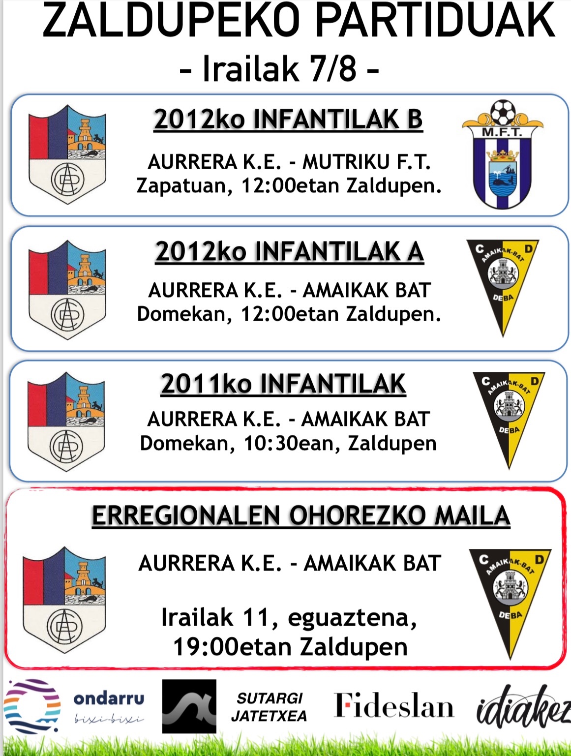 Azpiko aldin ikusiko dozuenak diz AURRERAko talde desbardiñak Zaldupe udal futbol zelaxan jokatukotxuen partidun egun eta ordutegixak. Aupa AURRERA tra ka tra!