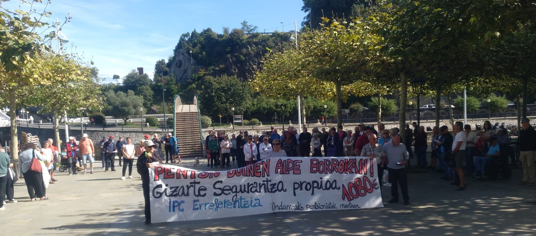 Indarraz hasi dabe gaur eguerdixan kurtso barrixe herriko PENTSIONISTAK. Antolatzallik esazku 155 kontatxuela pankarta atzin gaurko konzentraziñoin. Ez dabe aldatu euran helburuk, PENTSIÑOI DUIÑAK DANONTZAT, 1080 euro pertsonako. GIZARTE SEGURANTZA NORBERANA eta DISKRIMINAZIÑOIRIK EZ GENERO MALLAN. Iñor eon leike eskakizun honen kontra? Datorren astelehenin be han batuko eidiz esanaz amatxu dabe gaurko ekimena. Jo Ta Ke LORTU ARTE!