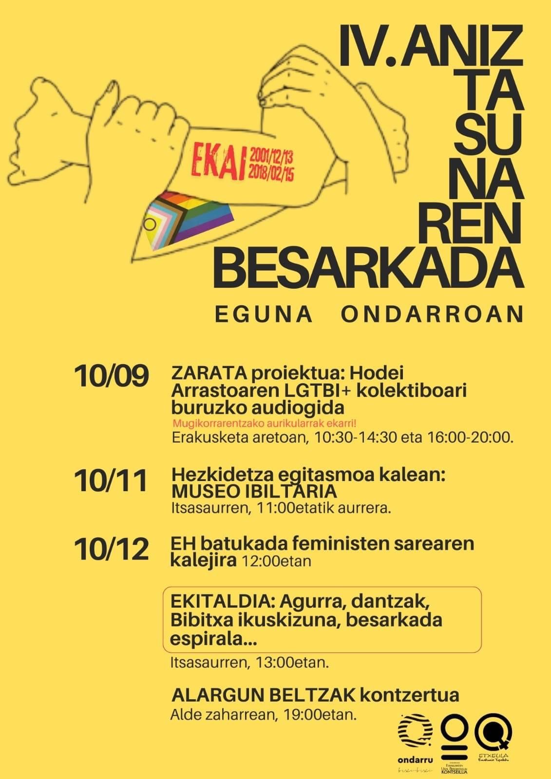 Urriak 12xan ( ongoxe zapatun) ospatukou herrixan IV. Aniztasun besarkadin egune egitarau zabal bateaz. Behian dakazue egun osoko egitarau. EKAI gogun!