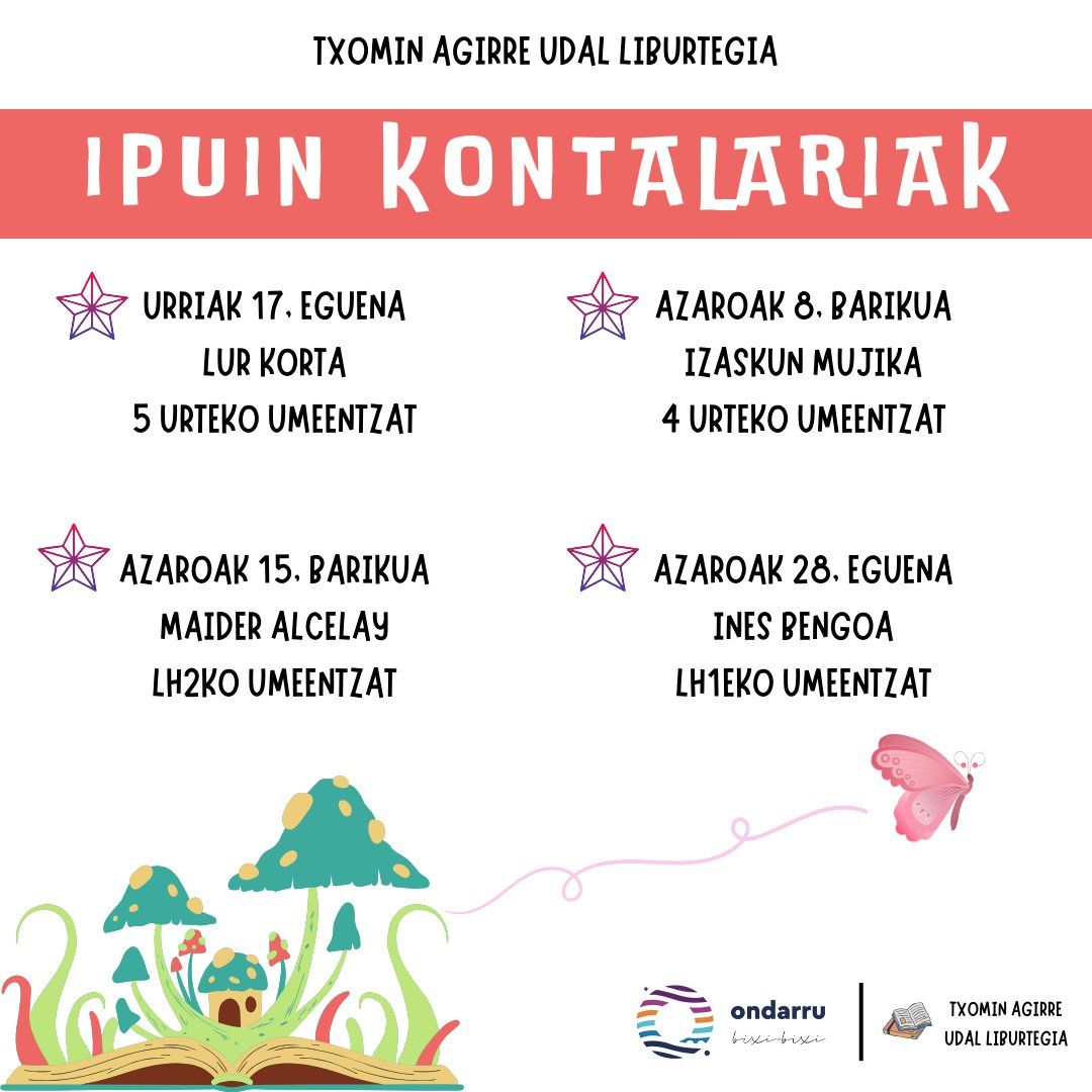 Zeñek ez dotxu ipuinak entzun beran haurtzarun noiz edo noiz? danok seguruena. Ohitxuria jarraipena emonaz aurten be herriko umintzako ipuin kontalaxak eukikouz Txomin Agirre udal liburutegixan Udalan antolakuntzapin. Azpixan dakazue egitarau ( noiz eta zeintzuk kontako daben ipuinak).