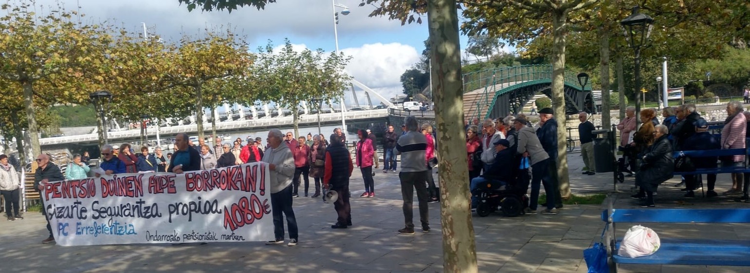 Ohitxu gaz astelehen eguerdixetan Alamedan ikusten herriko PENTSIONISTAK pankarta atzin ta gaur be hutsik ez dabe ein. Gaur 130 lagun batu eidiz bertan (tartin herriko alkati ta bi zinegotzi) esazku antolatzalletako batek. PENTSIÑOI DUIÑAK eskatzi zilegizku eta beharrezku dalako, datorren astelehenin be han eongo eidiz esanaz amatxu dabe gaurko ekimena. Jo ta Ke LORTU ARTE!