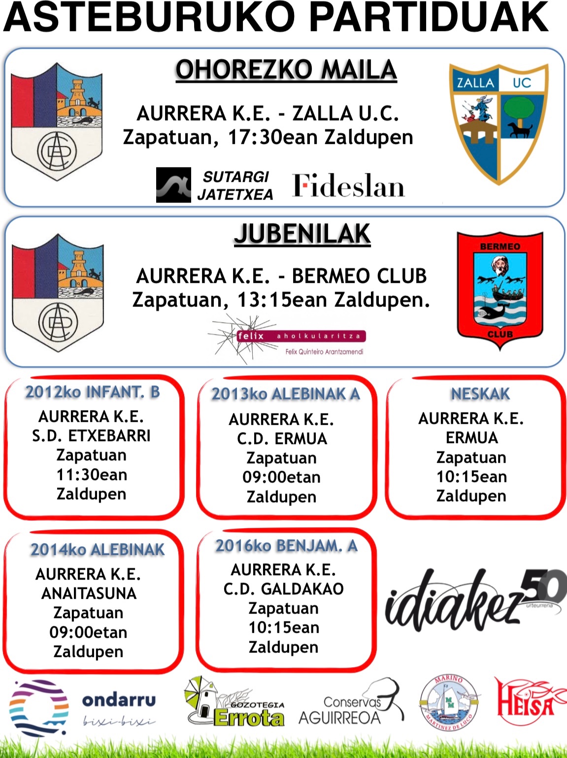 Behian ikusiko dozuen partiduk jokatukotxue AURRERAko futbol talde desbardiñak Zaldupe udal futbol zelaxan ongo astebukaeran. Aupa AURRERA tra ka Tra!