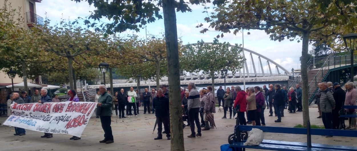 Gaur be ez dabe hutsik ein herriko PENTSIONISTAK. Hamabixak puntun batu diz Alamedan pankarta atzin PENTSIÑOI DUIÑAN eskakizune etxen, gaur 130 lagun zenbatutxue konzentraziñoin. Borrokatu baik ixe ez dala lortzen argi dauke bertaratzen dizenak, Onurak danentzako ixango litxake, kalea urteten dizenantzako eta epeletan gelditzen dizenantzako be (nahiz eta justu ez ixan). JO TA KE LORTU ARTE!