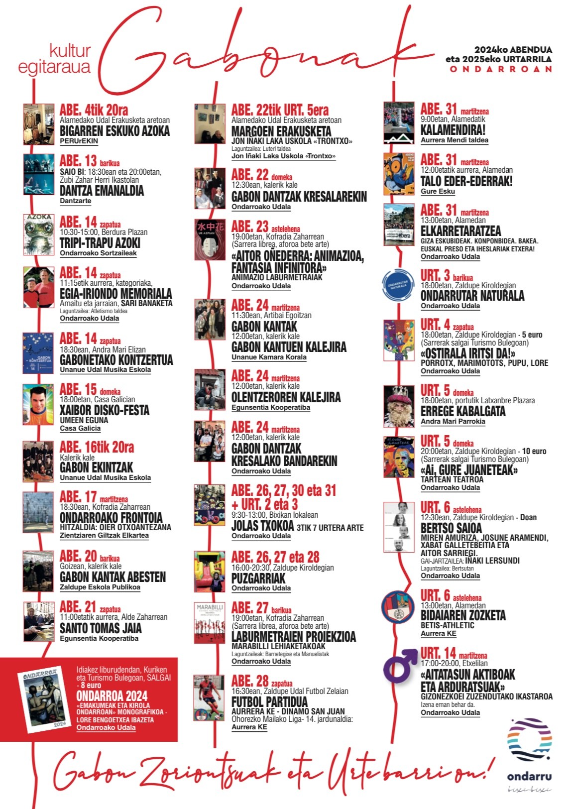 Gabonetako egitaraua aurkeztu dau Udalak. 30 ekintza eongo diz udalak eta herriko taldik elkarlanin antolatutako egitarau.