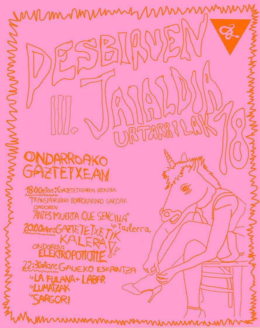 Gaur (Urtarrilak 18) ospatuko da Ondarruko Gaztetxin Lea-Artibai eta Mutrikuko Desbiaun hirugarren jaxe. Desbiauk herrixetan saretu, antolatu, dinamika heterosexualak interpela eta honek apurtzeko helburuaz datoz eskualdeko transmaribolluk.