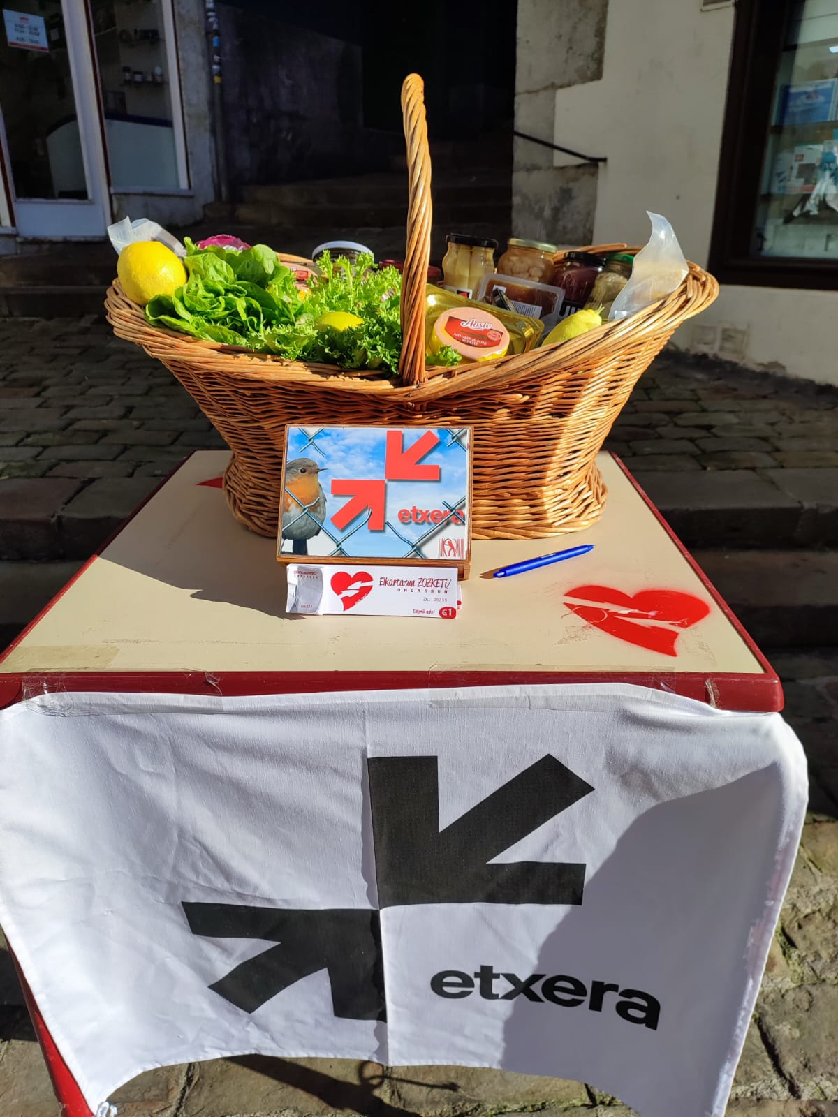 PRESO ta IHESLAXAN aldeko lagunak goxetik ibili diz ELKARTASUN otzarako boletuk saltzen Kalekutzeko eskillaretan, Herrixan falta dizenai elkartasun ekonomiku emoti de horren helburu. Zoixonak eta gozatu, otzarin irabazliai!