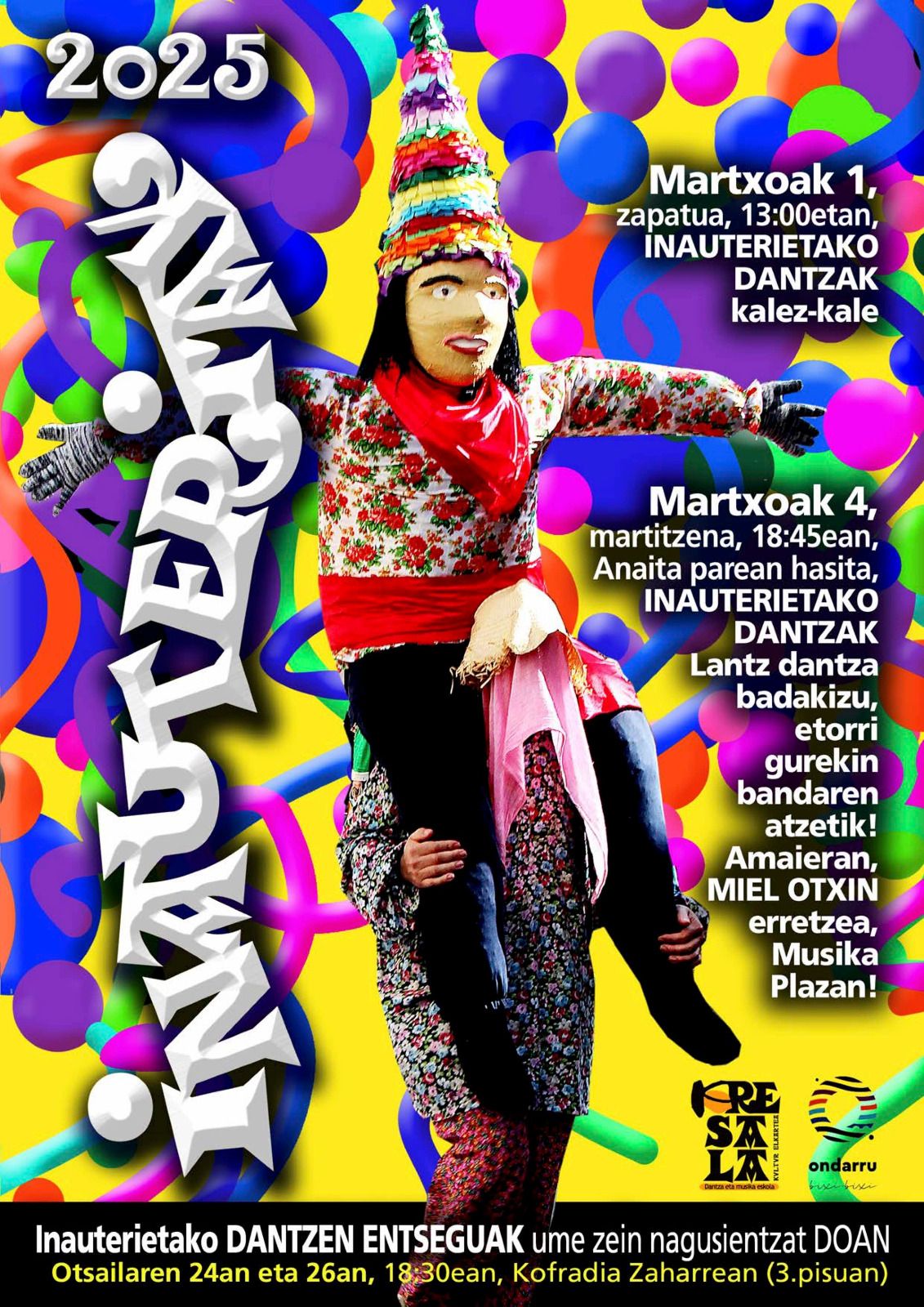 Hilabete eskas falta diz aurtengo Iñauteixak ospatzeko ta hasi diz egitarauk zabaltzen. KRESALA K.E.ku alla gasku lelengutaku eta dantzan etxeko gonbidapena eizku, bai ikastaro motz bat etxeko(otsailak 24an eta 26an kofrai Zaharrin 3.solairun) eta batxe be Martxoak 1eko eta 4ko kalejiretan parte hartzeko. Hasi mozorruk prestaten, GORA IÑAUTEXAK!