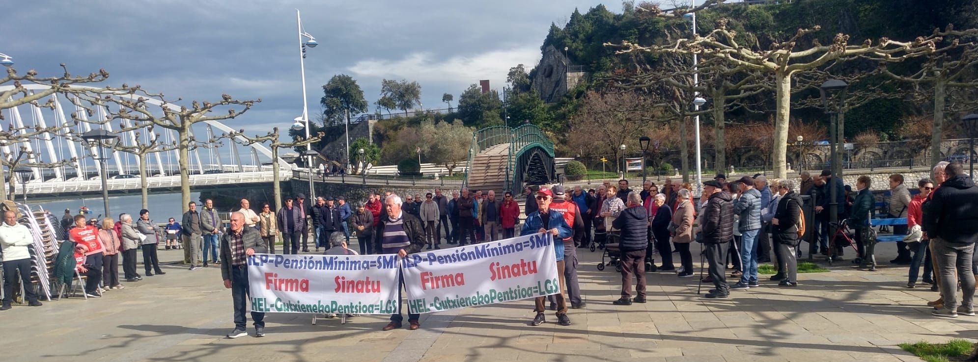 Alamedan ikusi douz gaur be herriko Pentsionistak pankarta atzin ganorazko pentsiñoik eskatzen. Antolatzallik esazku gaur 145 lagun batu dizela ta 20 minutuz egon di bertan, betiko lez. Buru belarri dabiz siñadurak batzen ta halaik jarraitxuko dabela esasku, gero Legebiltzarrea eruteko. Jo ta ke Lortu arte esanaz amatxu dabe gaurko ekimena, ta datorren astelehenin be, bertan batzeko geratu diz.