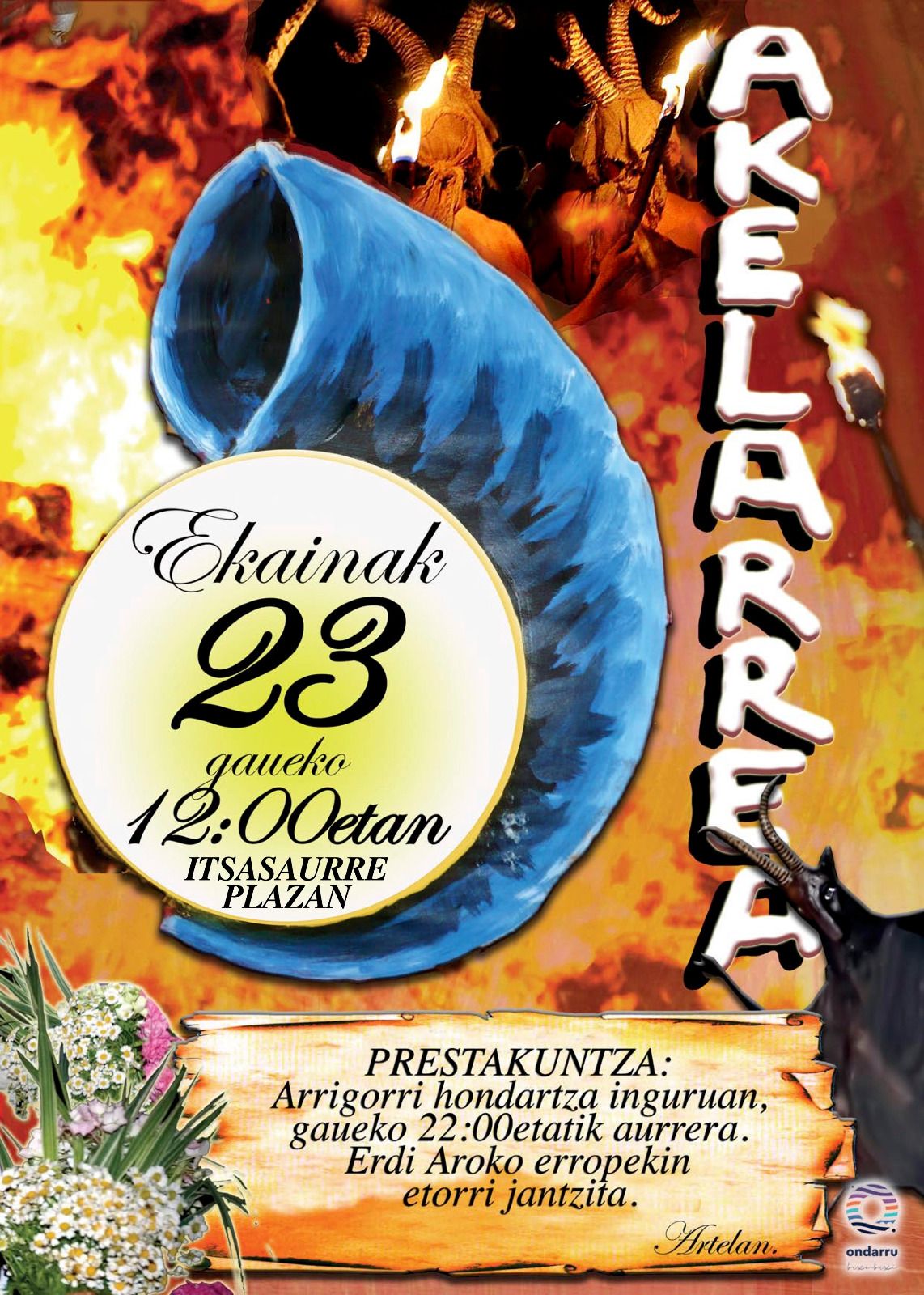 Urtero lez ARTELAN kultur elkartin eskutik ekainak 23 illuntzin AKELARRI ospatukou herrixan. Aurten aldaketa bat eukikou, Itsasaurreko plazan gabeko 12xetan batzeko deixe ein dabe. Horren aurretik gabeko 10etan Arrigorriko hondartza ingurun batzeko geatu diz (erdi aroko erropakin juteko ahal dabenak). Etorri zeu be!