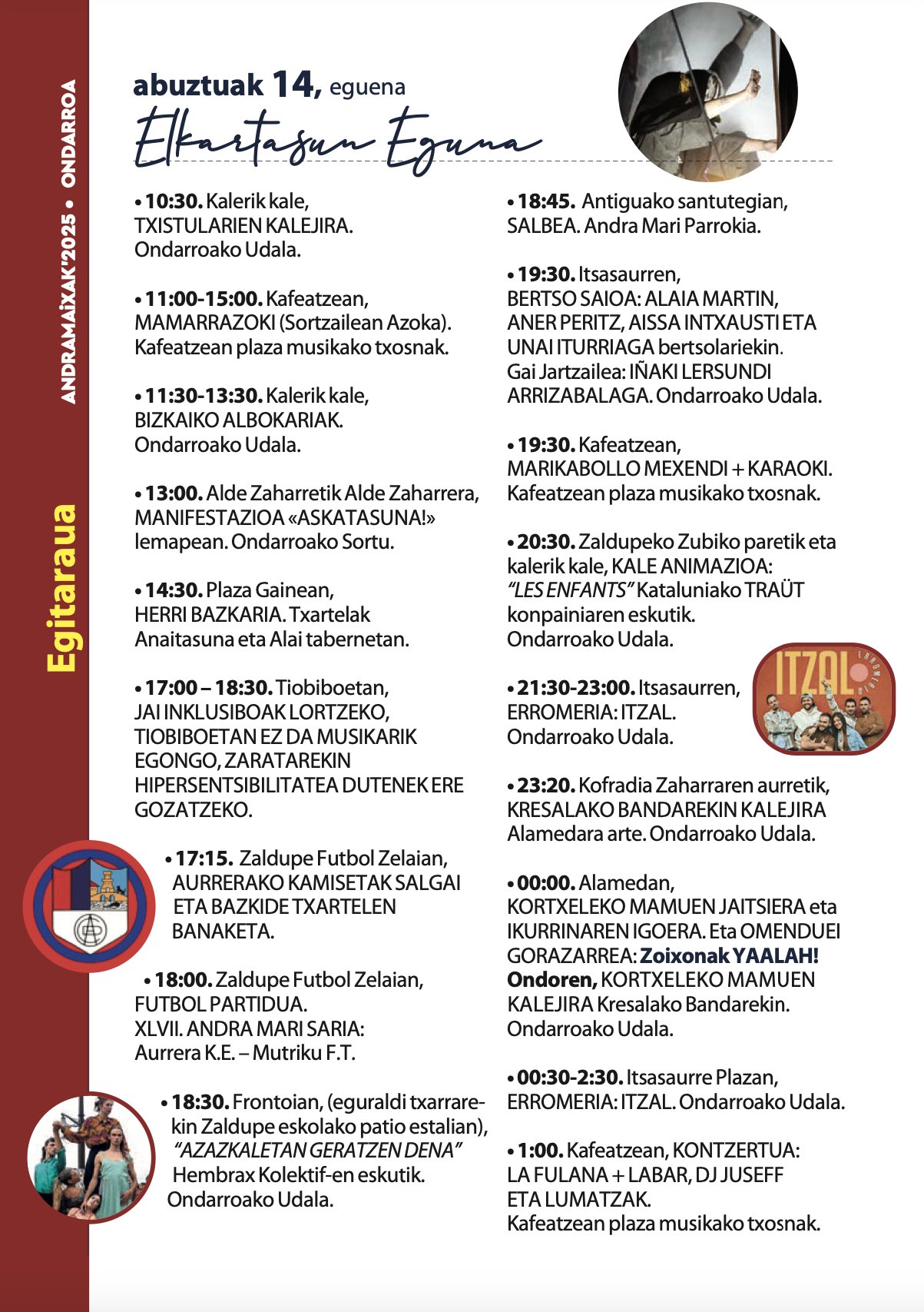 Gaur, ELKARTASUN egune ospatukou (azpixan dakazue gaurko egitarau) herrixan falta douzenak gogun eukiaz.