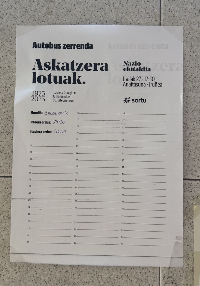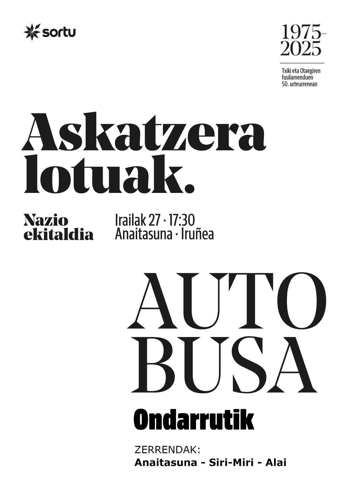 Zitxa garrantzitsu dakau irailan 27an Iruñeko Anaitasunan. Txiki eta Otaegi eusko gudarixan fusilamendun 50. urteurren honetan, Sortuk ekitaldi nazionala deitxu dau.