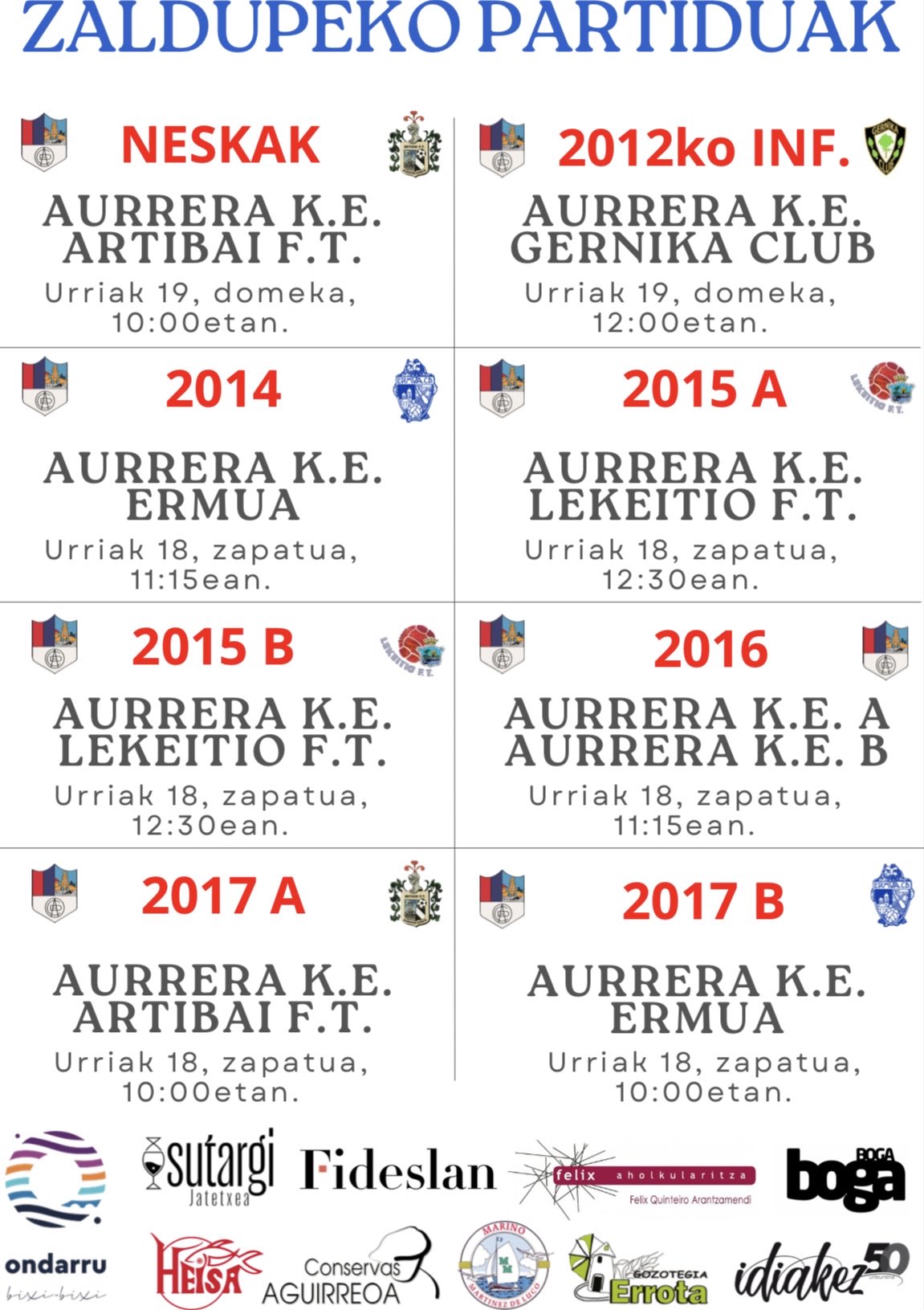 Azpixan ikusiko dozuenak diz AURRERAko talde desbardiñak Zaldupe udal futbol zelaxan jokatukotxuen partidun egun eta ordutegixak! Aupa AURRERA tra ka tra!