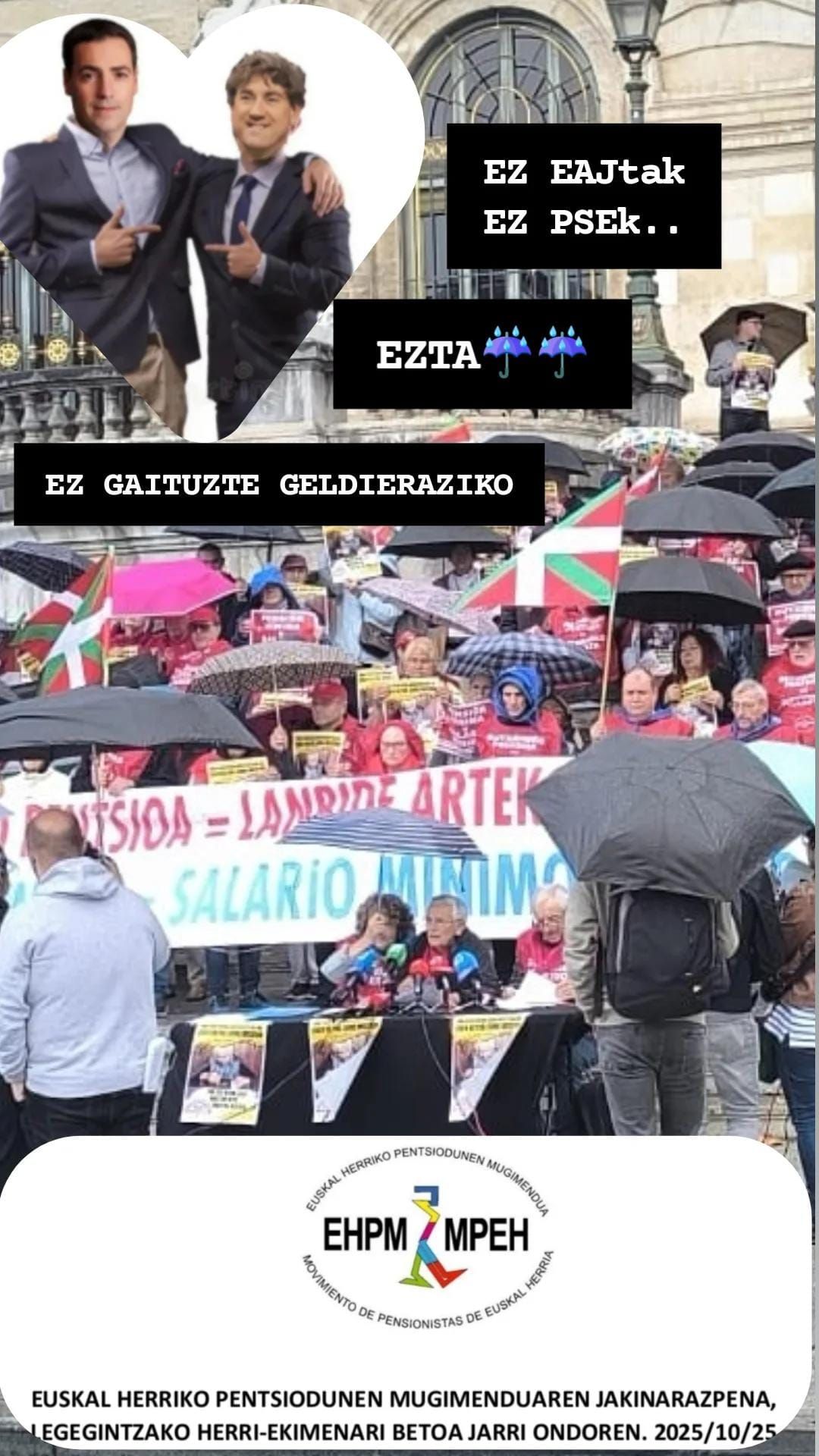 Beste alde batetik, Euskal Herriko Pentsiodunen Mugimenduko (EHPM) hainbat partaide, zapatun, urrixan 25in, Madrilen ixan zin Estatuko beste Herri batzuetako platoformekin batea deitxutako manifestaziñoin. Autobusez jun zin 200 bat lagun inguru Hego Euskal Herritxik megafonixi pankartak eta ikurriñakin euran aldarrikapenak zabaltzen.